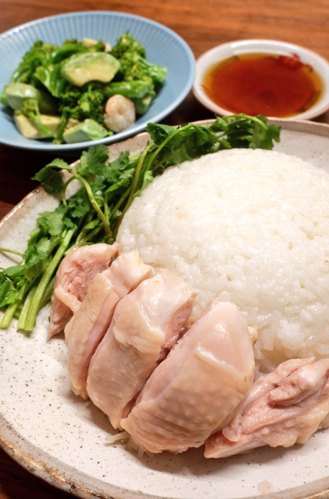 >>21962236>unseasonedIt's dry-brined, and then poached in rice wine (shaoxing) with soya sauce, and a bunch of scallion, ginger, and pandan leaves (at least in Singapore) and a bit of sesame oil. It's not sad boiled wypipo-eating-catfood chicken. The rice is done in the "broth" made from cooking the chicken with extra ginger, garlic, and some of the extra chicken skin and fat trimmings. It's not just some Minute Rice tragedy neither.It's not as boring as it looks, but it is better with a bit of a char or sear on the chicken skin and a bit of shallot in the rice. When I make it, I remove the skin after the chicken's done and pan fry it.