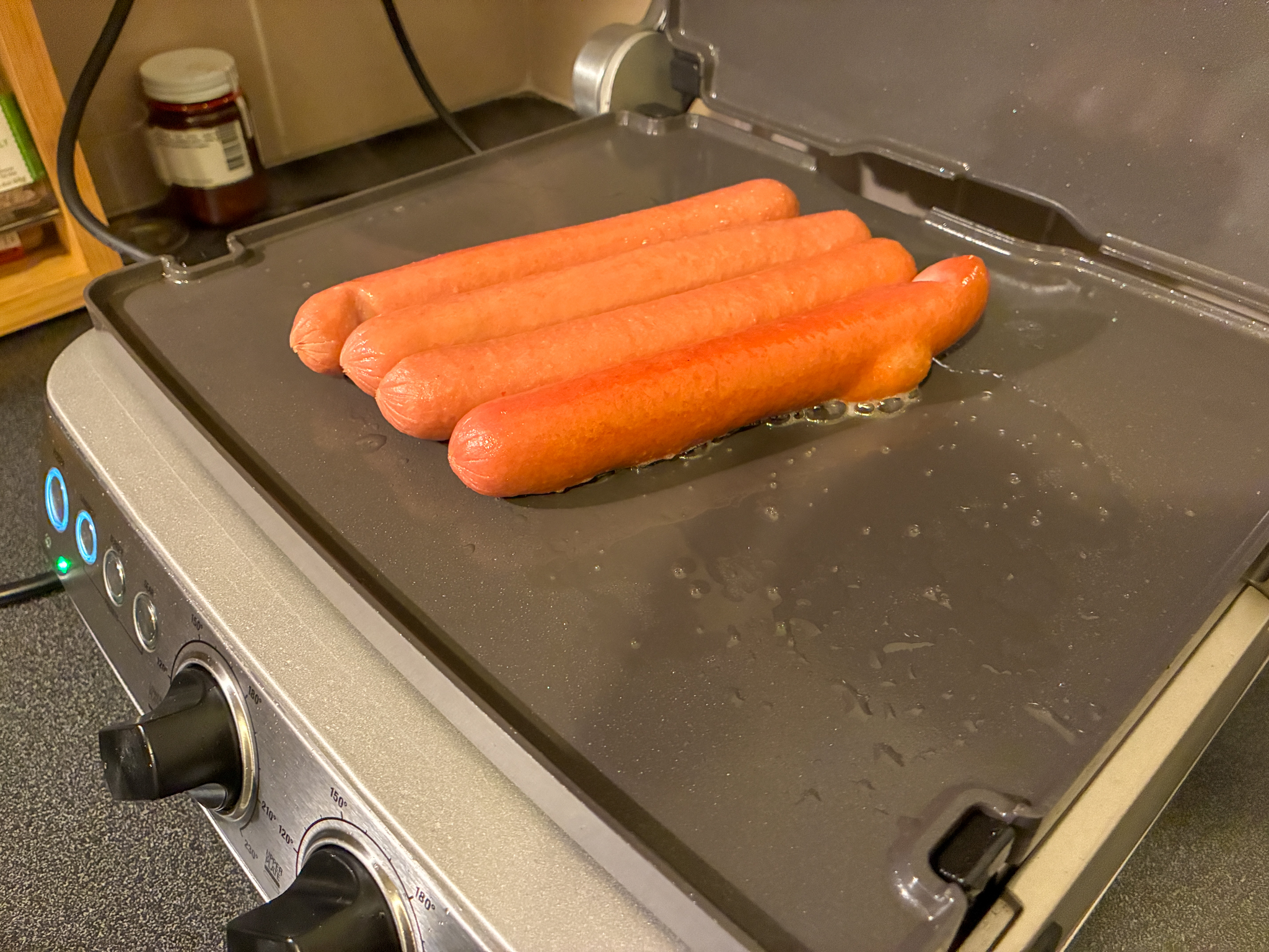 I'm simmering dogs and then I'm going to brown them on my griddle and eat them on fresh untoasted sliced bread with various toppings I will post my adventure