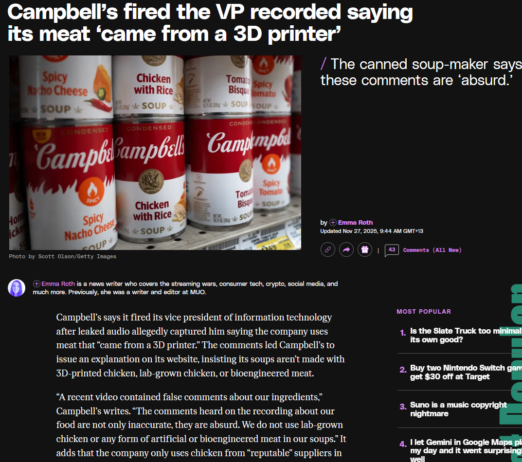 isnt the mean in Campbells soups and other canned crap already 3d printed imitation meat?