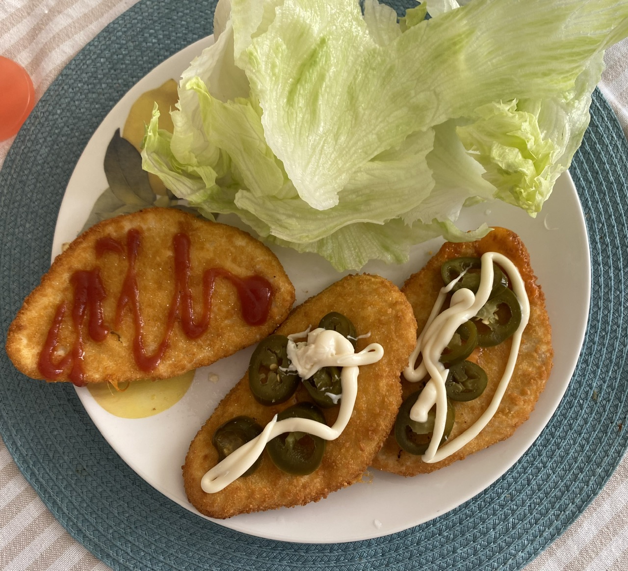 I’ve been eating a lot of chicken cheese schnitzels with jalapeño+mayo+MSG. Use lettuce as burger buns. Off screen is a tall glass of temperate purified water