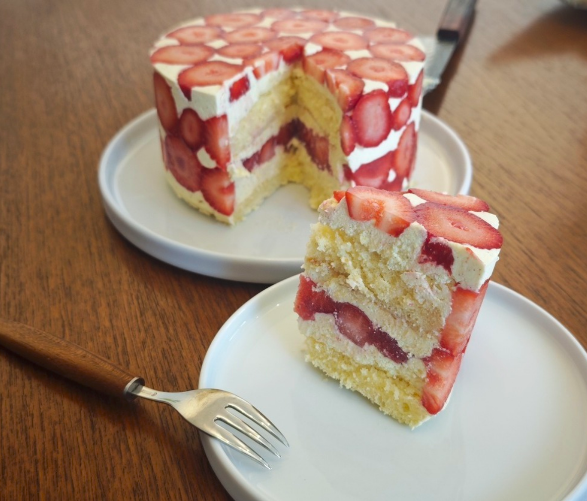 It seems difficult to balance the acidity of fruit, not just strawberries, with the sweetness of cream.Fruit cakes and fruit tarts often end up with a disjointed texture.