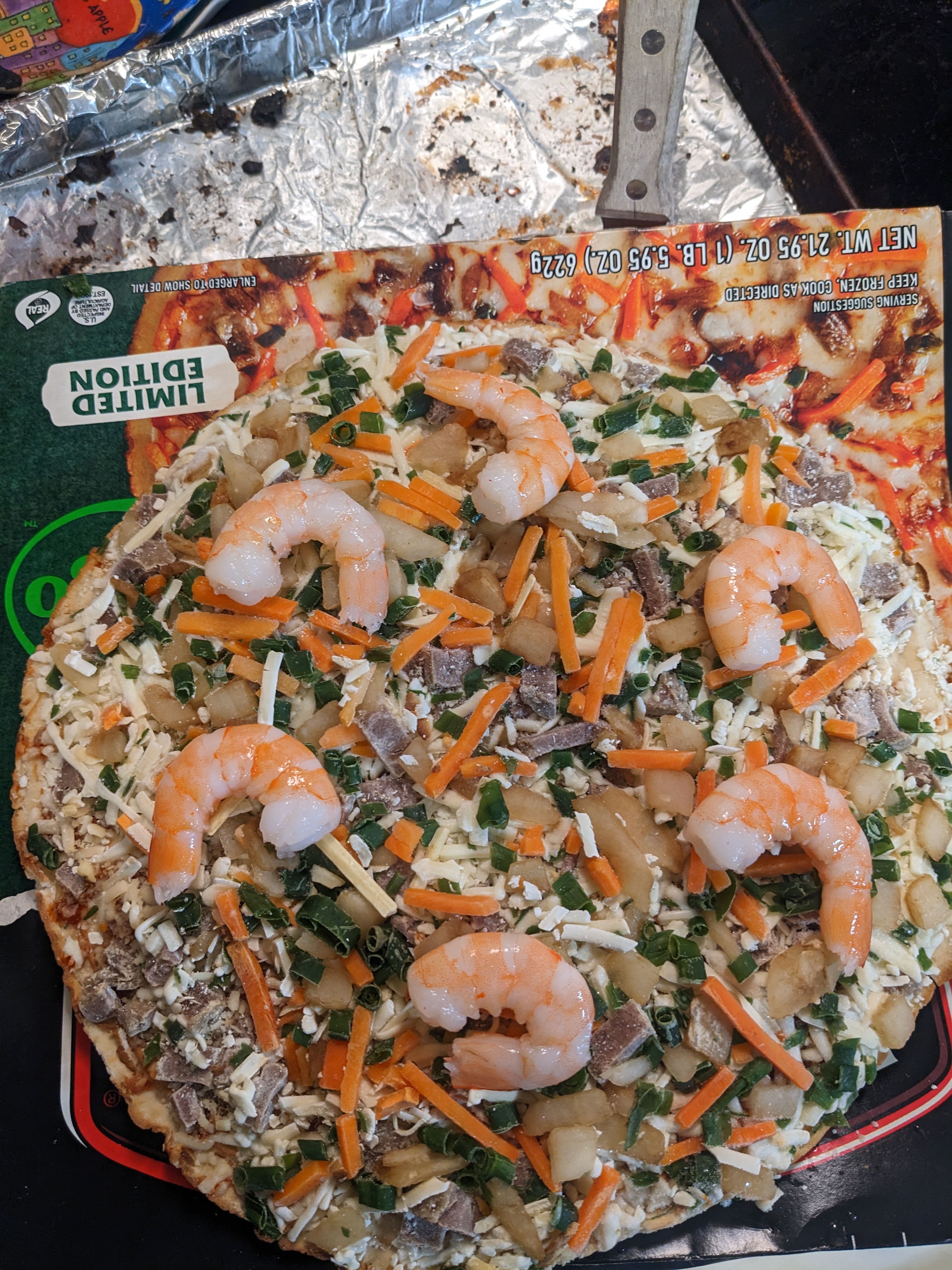 >>21974102I do expect frozen pizza to be edible, but even without the shrimp it would've been the worst saltiest thing.I've even added Korean bbq, shrimp, and Kewpie to cheese pizzas with much better results. Had some chopped garlic and cilantro on there too, yummmmm