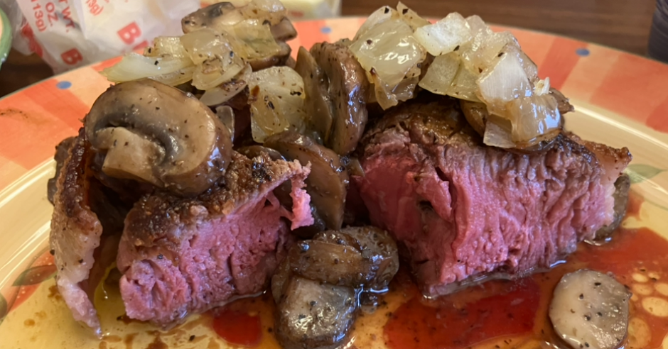 onions and mushrooms look steamed and real shitty. steak looks amazing.