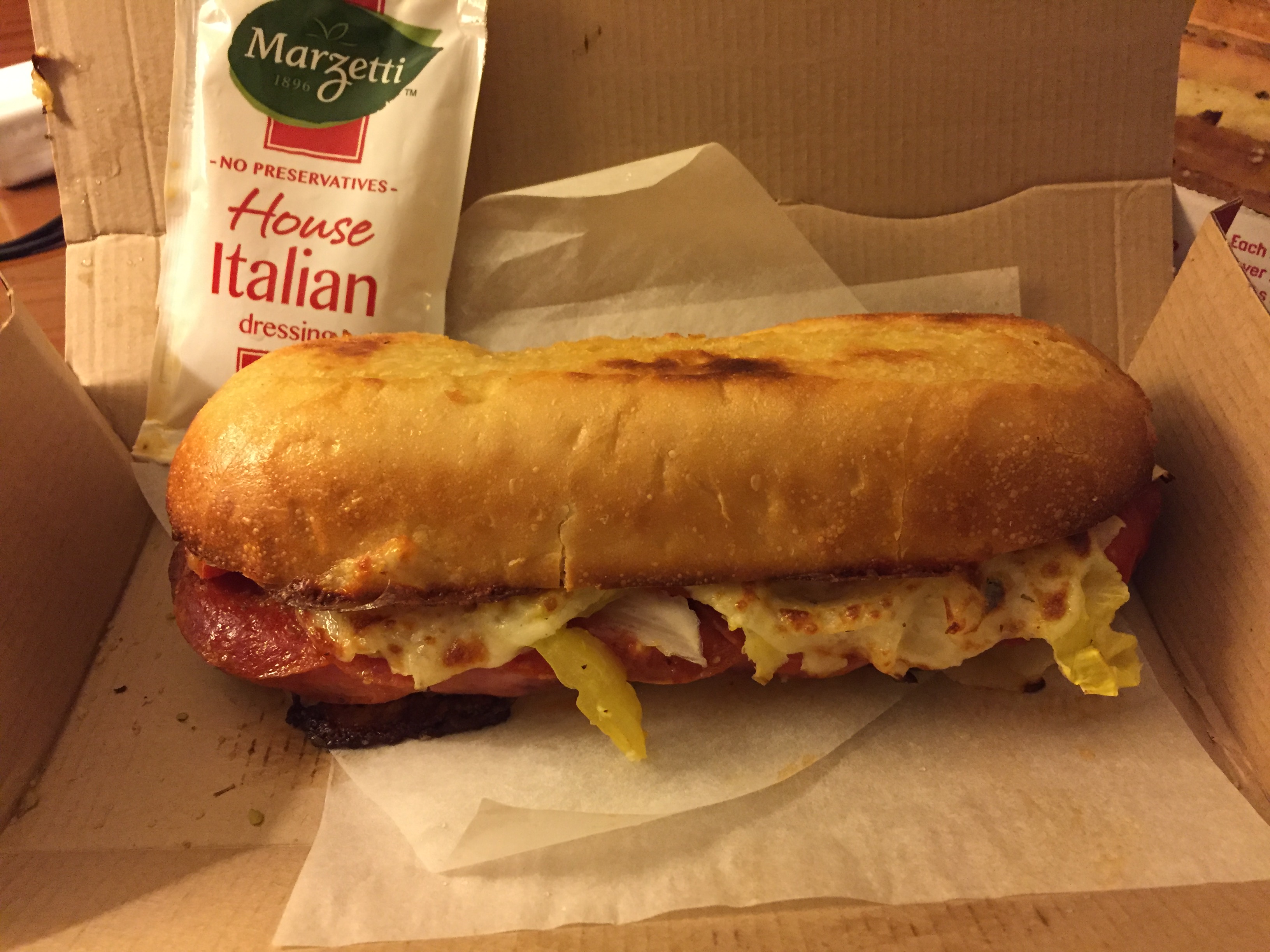 >>21975315>we have sandwiches nowWait I remember you had those some years back. I ordered one delivered to my hotel room while I was on a business trip. It wasn't that great desu. Just pizza toppings and pizza cheese shoved into a sub roll and the dressing was soooo warm