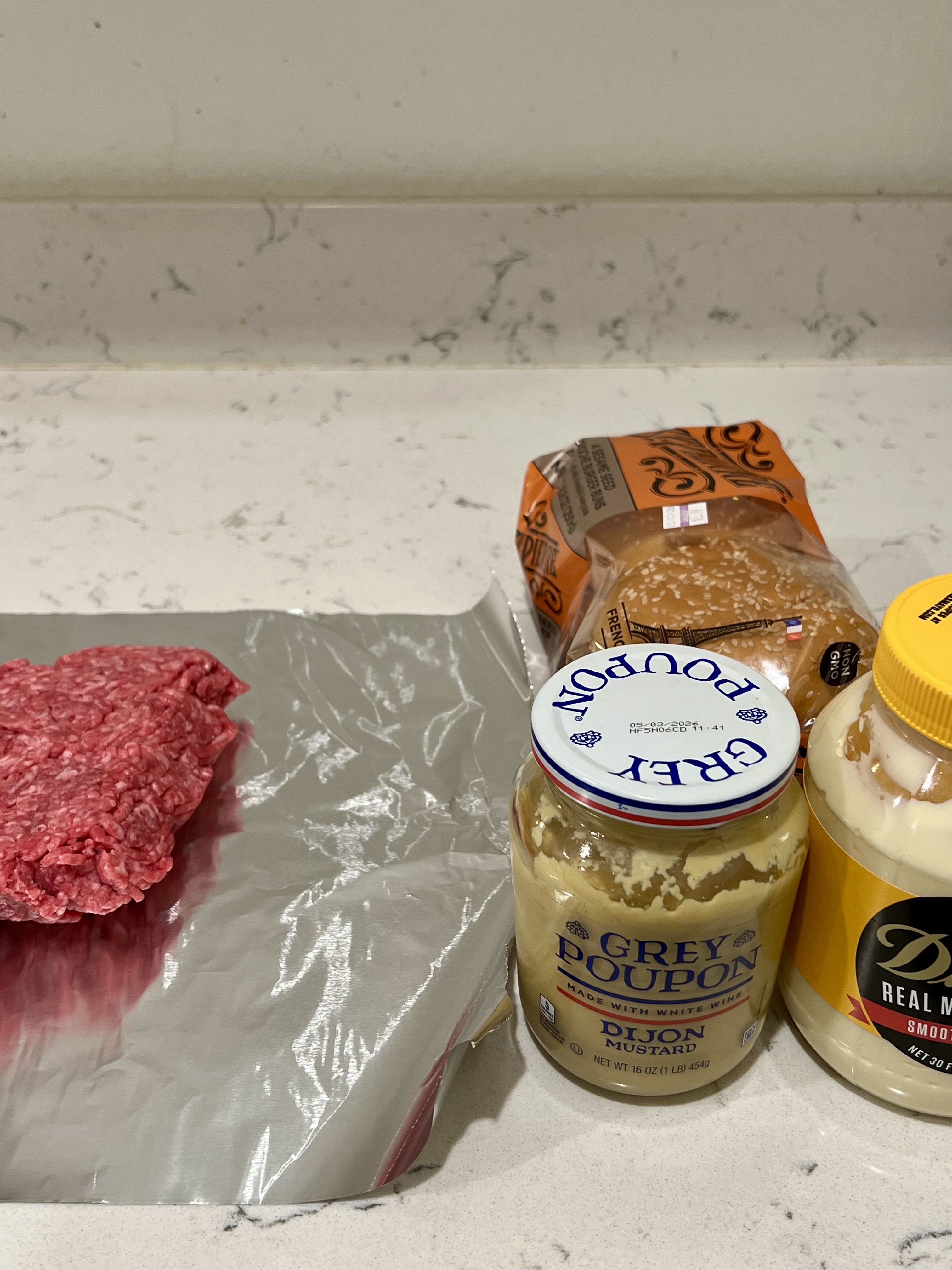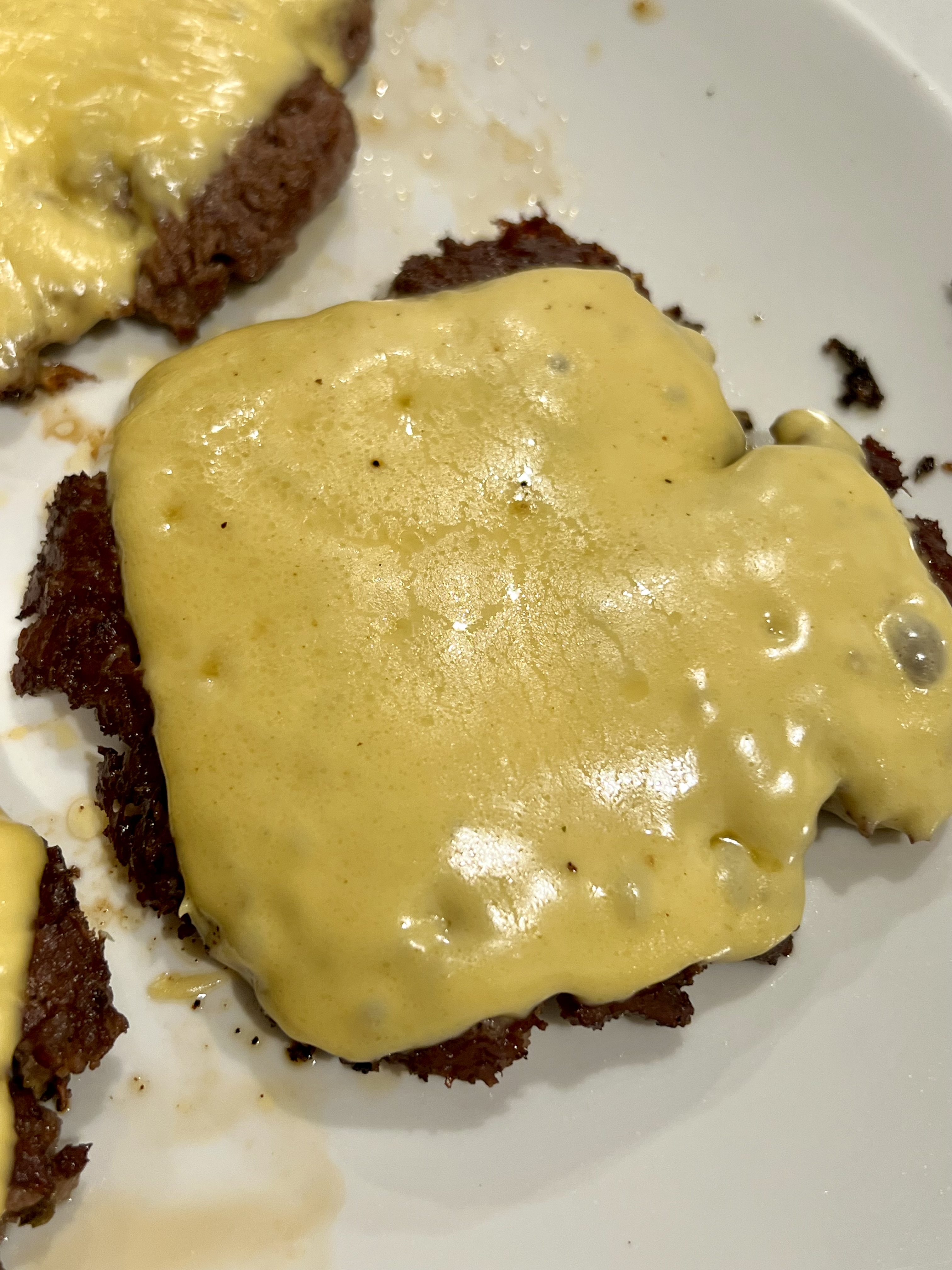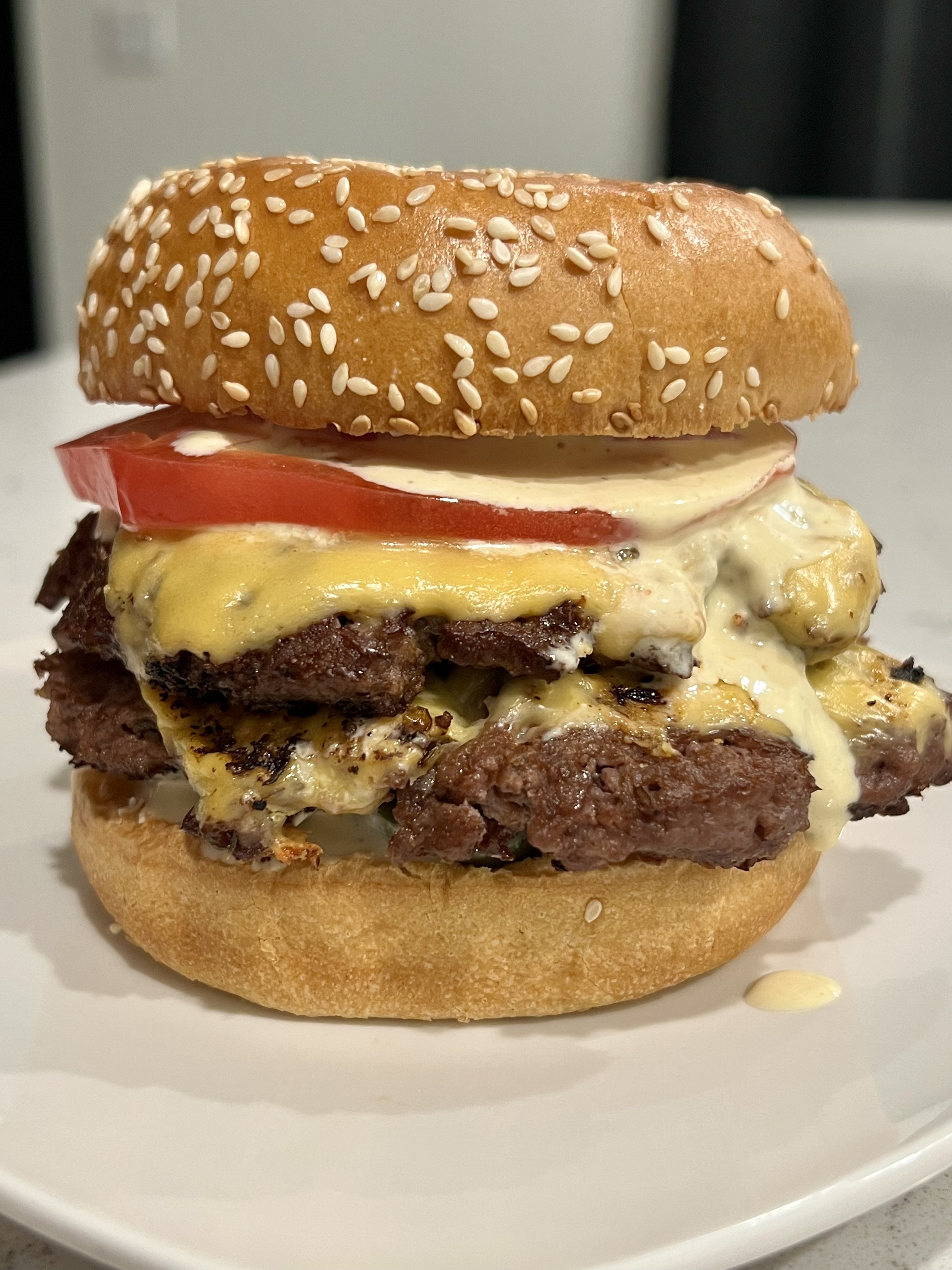 It tastes pretty good but it’s going to be too intense for the burger (and we want to put it on both buns) so we reduce the r piquant-ness by adding about 1tbsp of mayonnaise.