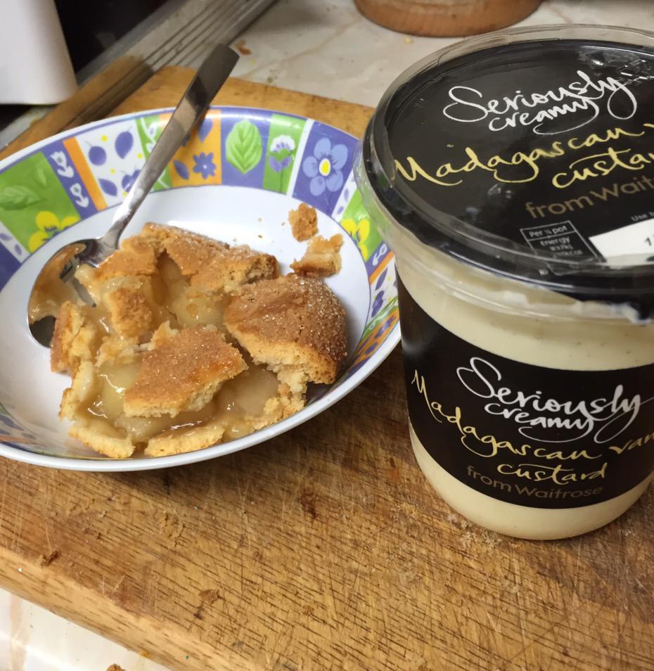 I understand the bong desire to put custard almost with any desert but sometimes it just gets everything soggy and I like texture in my desserts too. Especially baked things. If you do it with rhubarb compote it's just two semi liquids