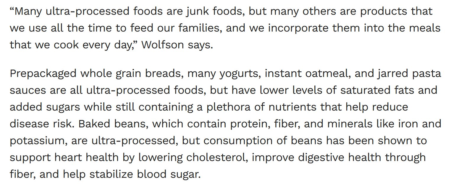 They state in the article that "ultra processed" does not necessarily mean "unhealthy". I've always advocated for people to ignore broad labels and instead look into specific ingredients and dietary requirements, this article has not changed my beliefs in that regard.