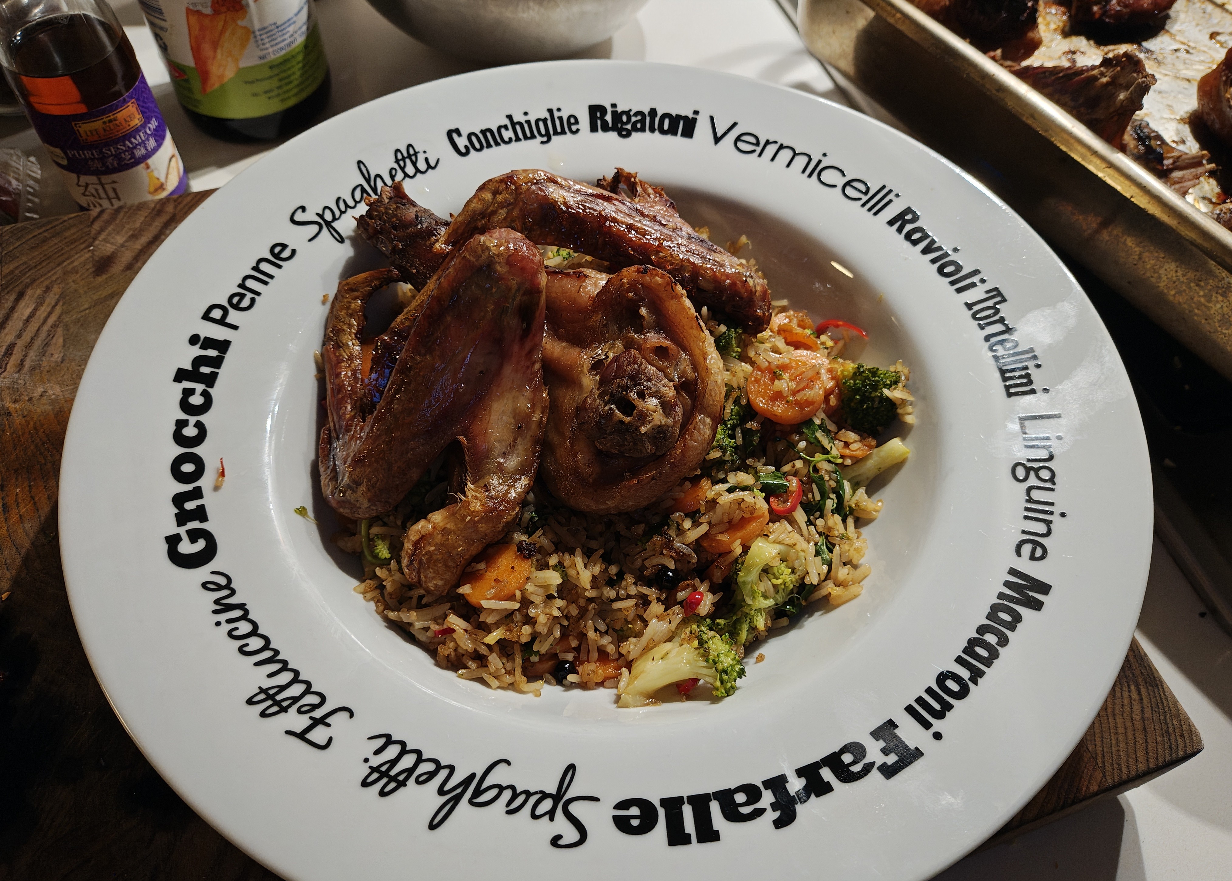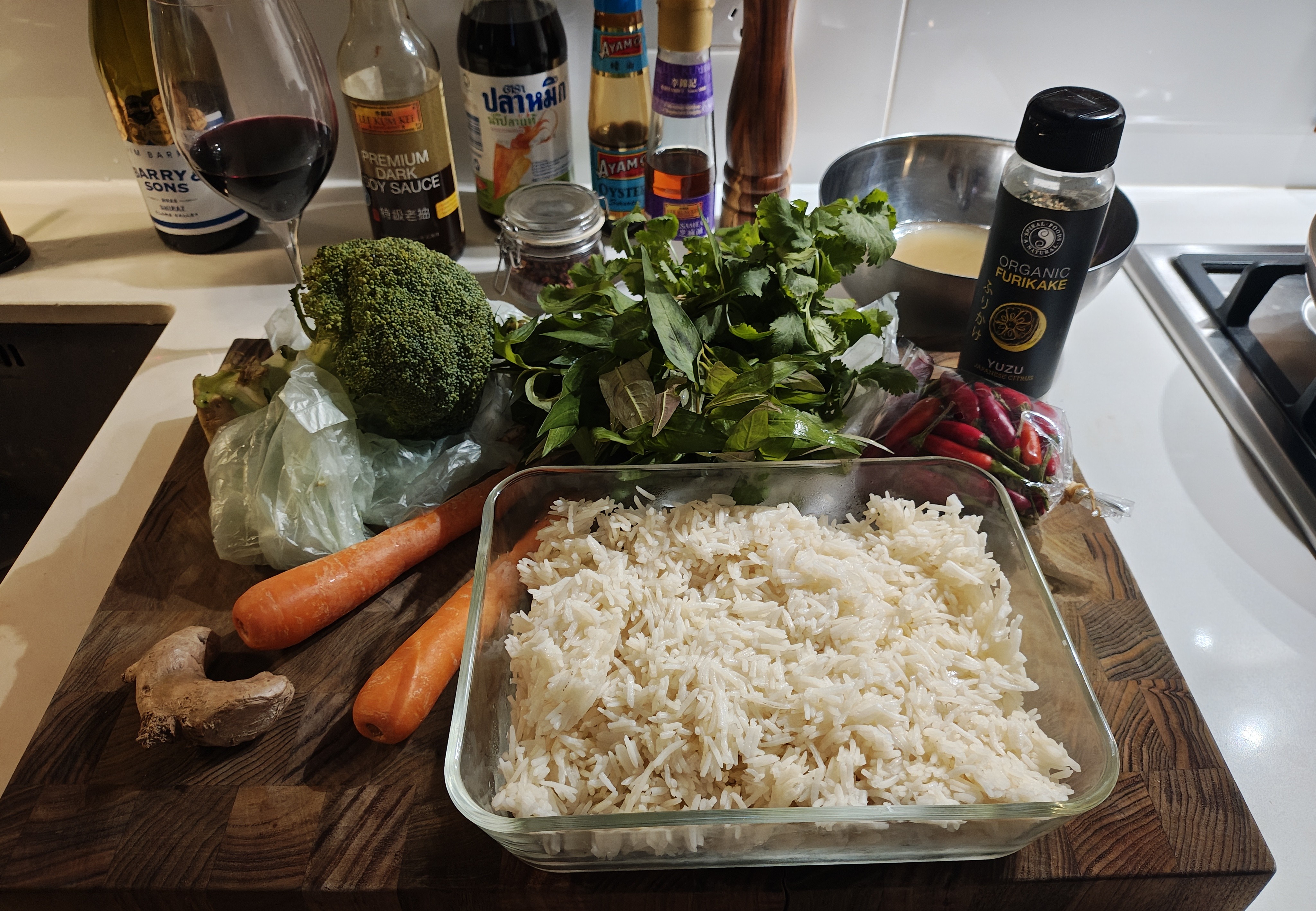 For tonight's dindins I've got this leftover rice so I'ma fry it up in duck fat with some things and serve with the wings and the neck.