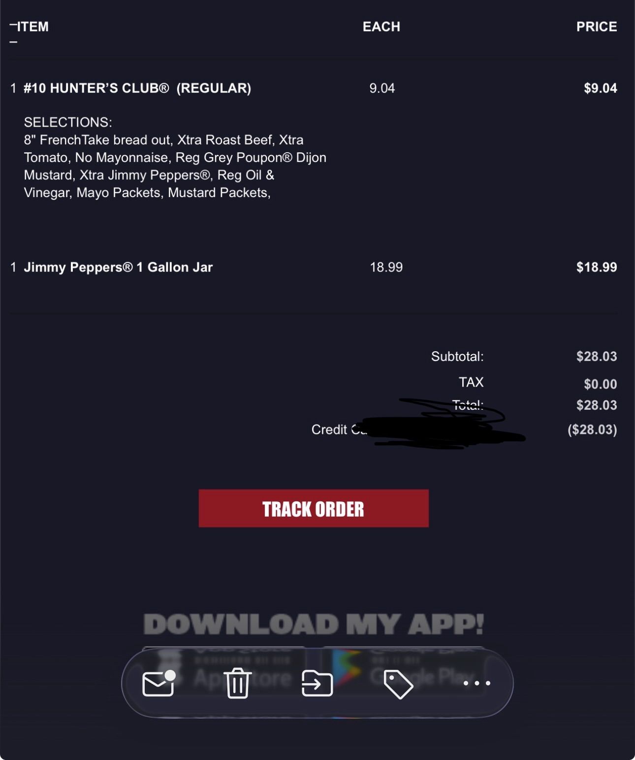 >>21981761Wow, very interesting anon! I've always had good experiences with JJ employees, they're super chill and it's one of the only fast food places that hasn't fucked up a single order of mine.I never worked there, just ordered the jar alongside a sandwich. Paid $18.99 for the Jimmy Peppers and $9.04 for an 8" Hunter Club with double roast beef back in 2021, inflation is a bitch.>here's the top of mine