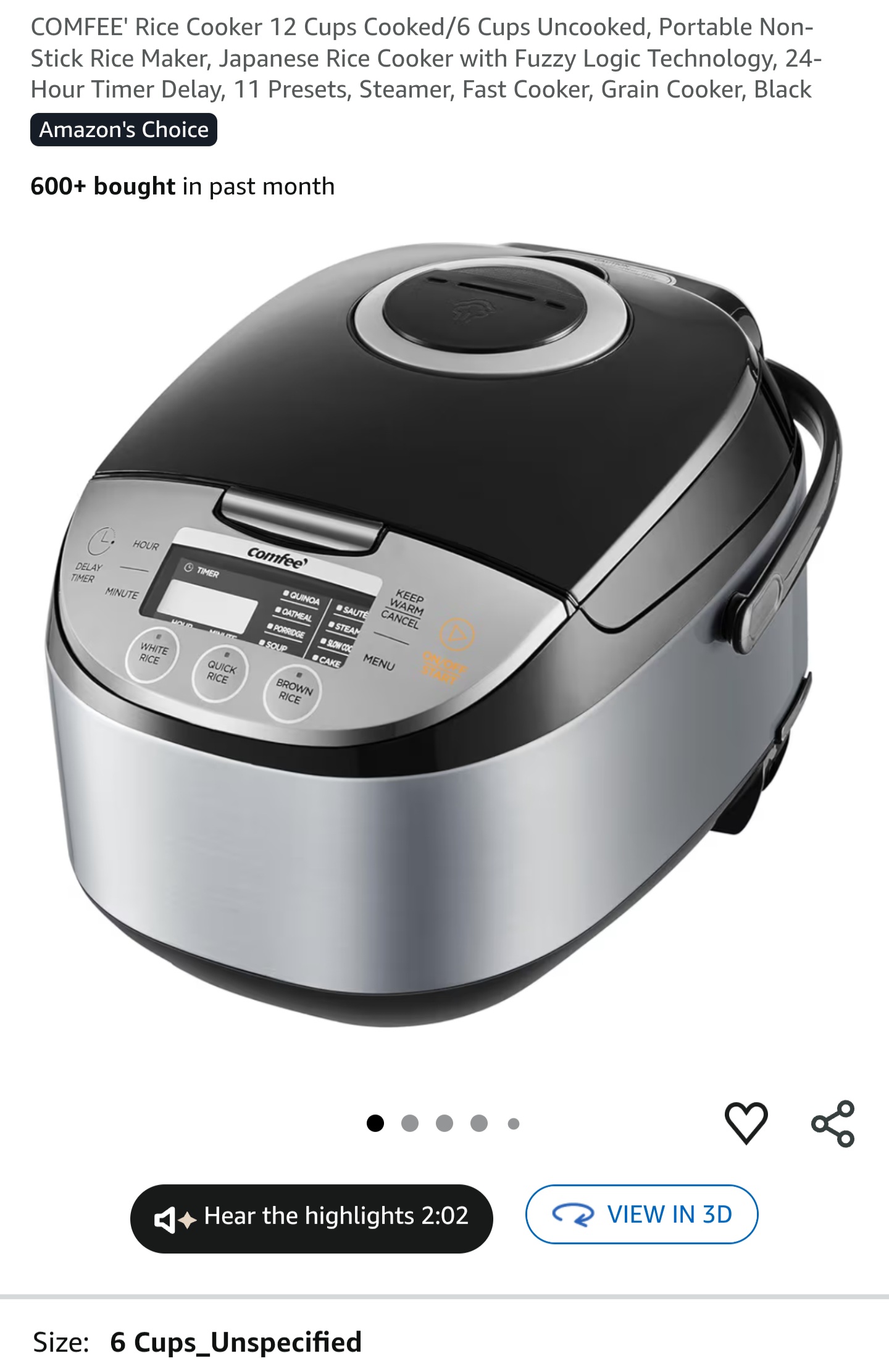 >>21981671That seems like it has the features you want in a nice rice cooker but I don't know about trusting the Comfee brand. I think you can find good rice cookers by known brands like Toshiba for $100 or so but they might be slightly more expensive now. I got a Toshiba fuzzy logic cooker for around $100 on Amazon around five years ago and it makes perfect rice and other grains every time. I eat rice or other grains almost everyday so a good rice cooker was a no brainer for me. The fuzzies work much, much better than the cheapo cookers, and stove top cooking can be a pain if you eat a ton of rice and other grains like quinoa.