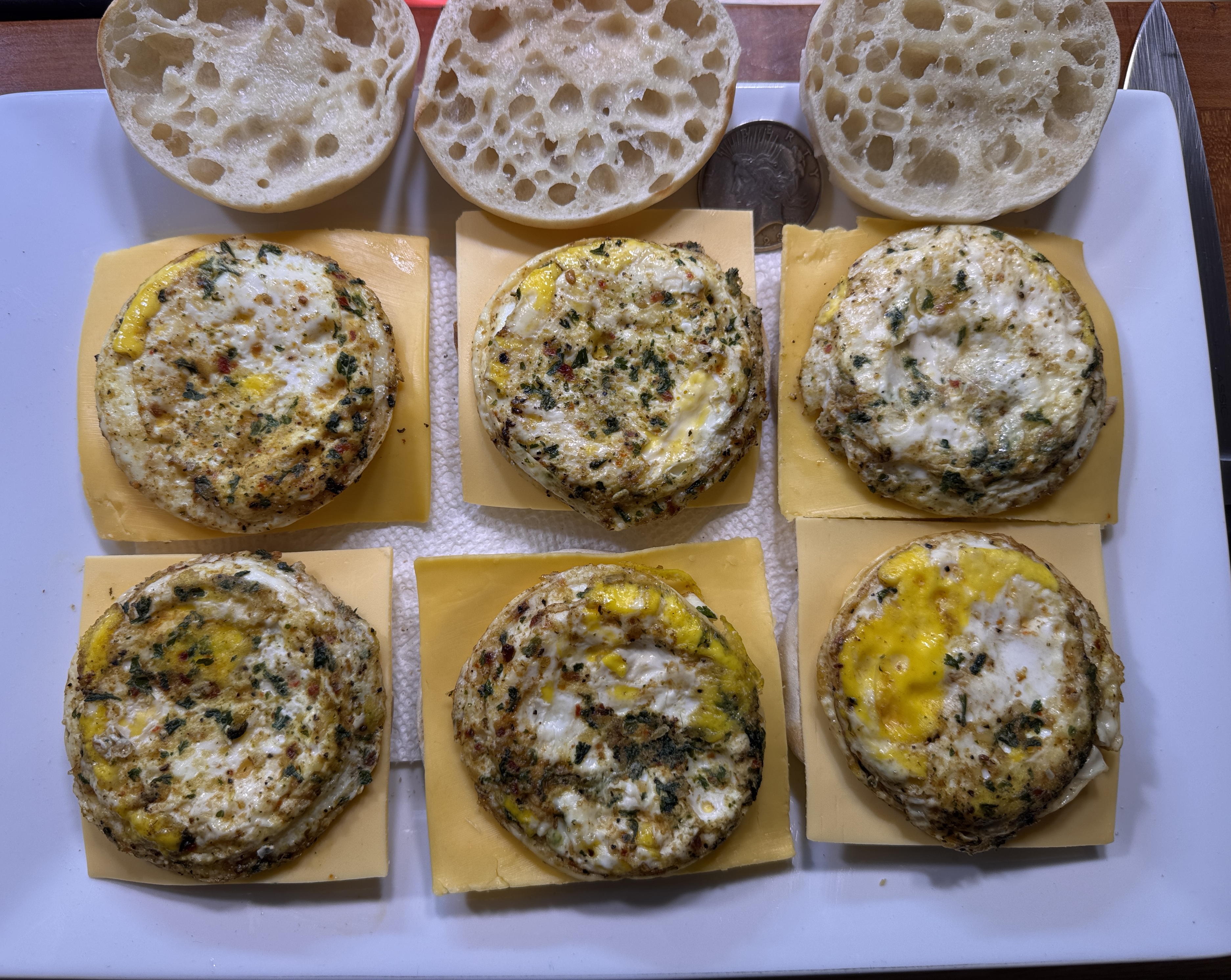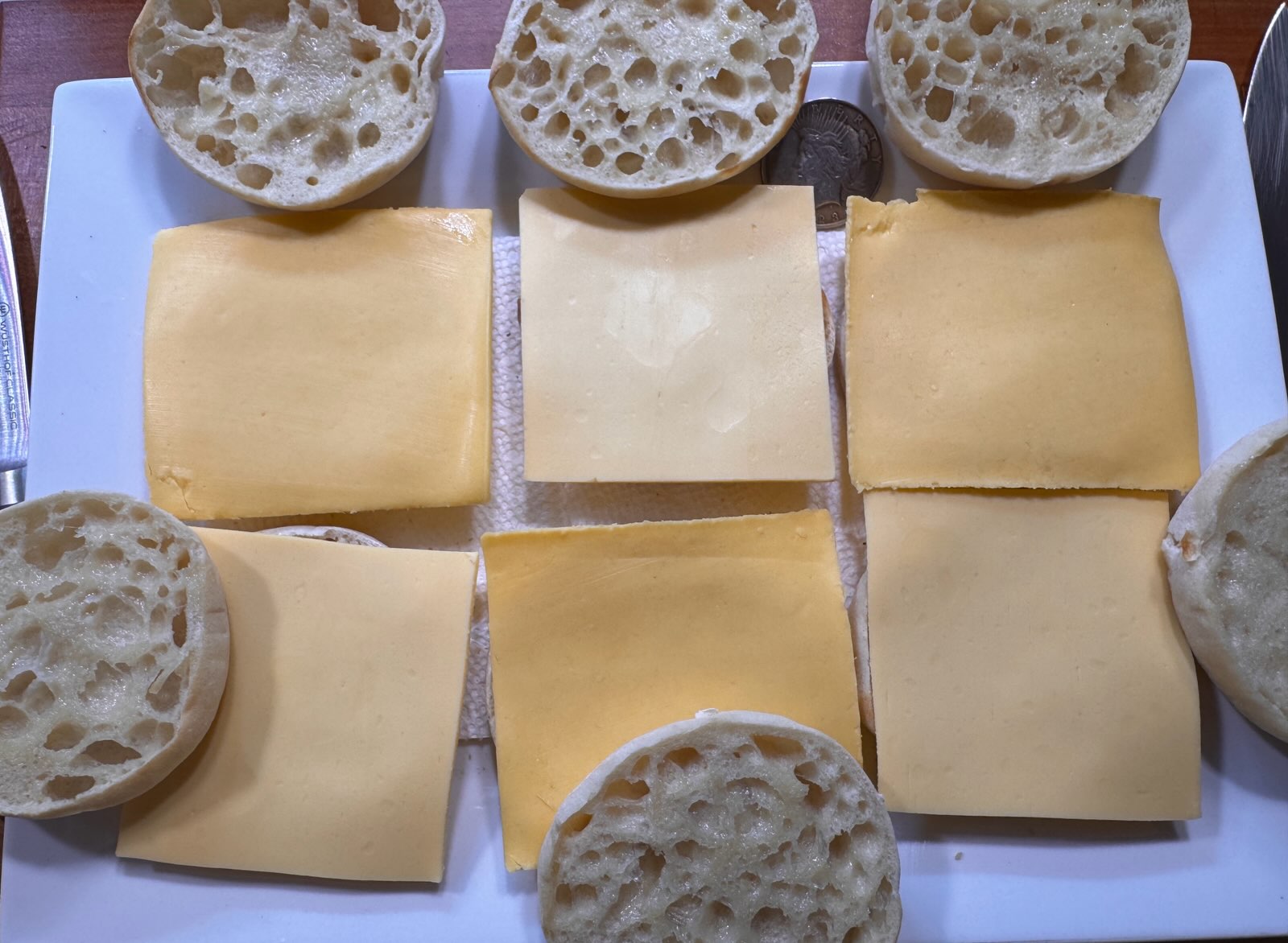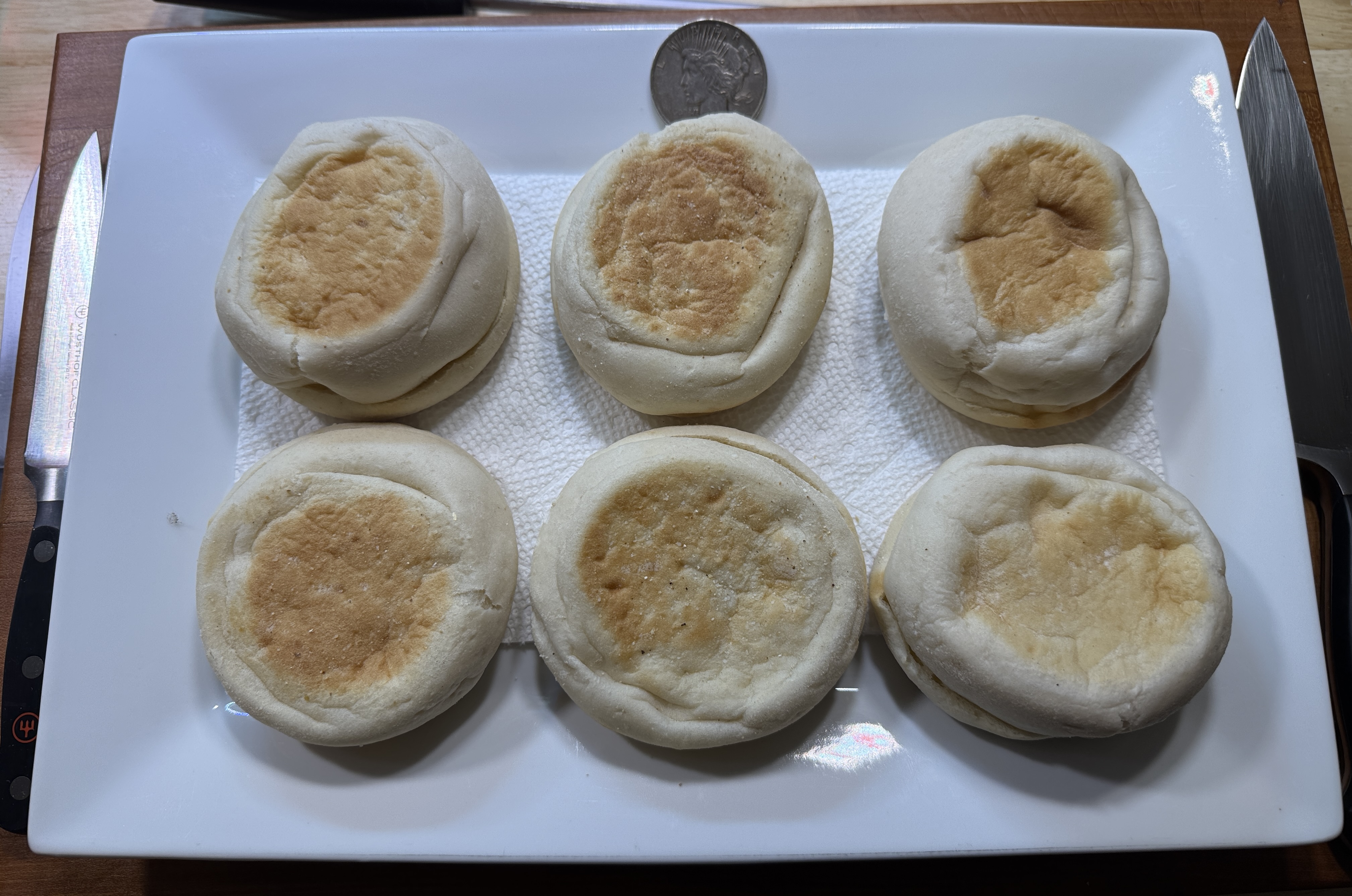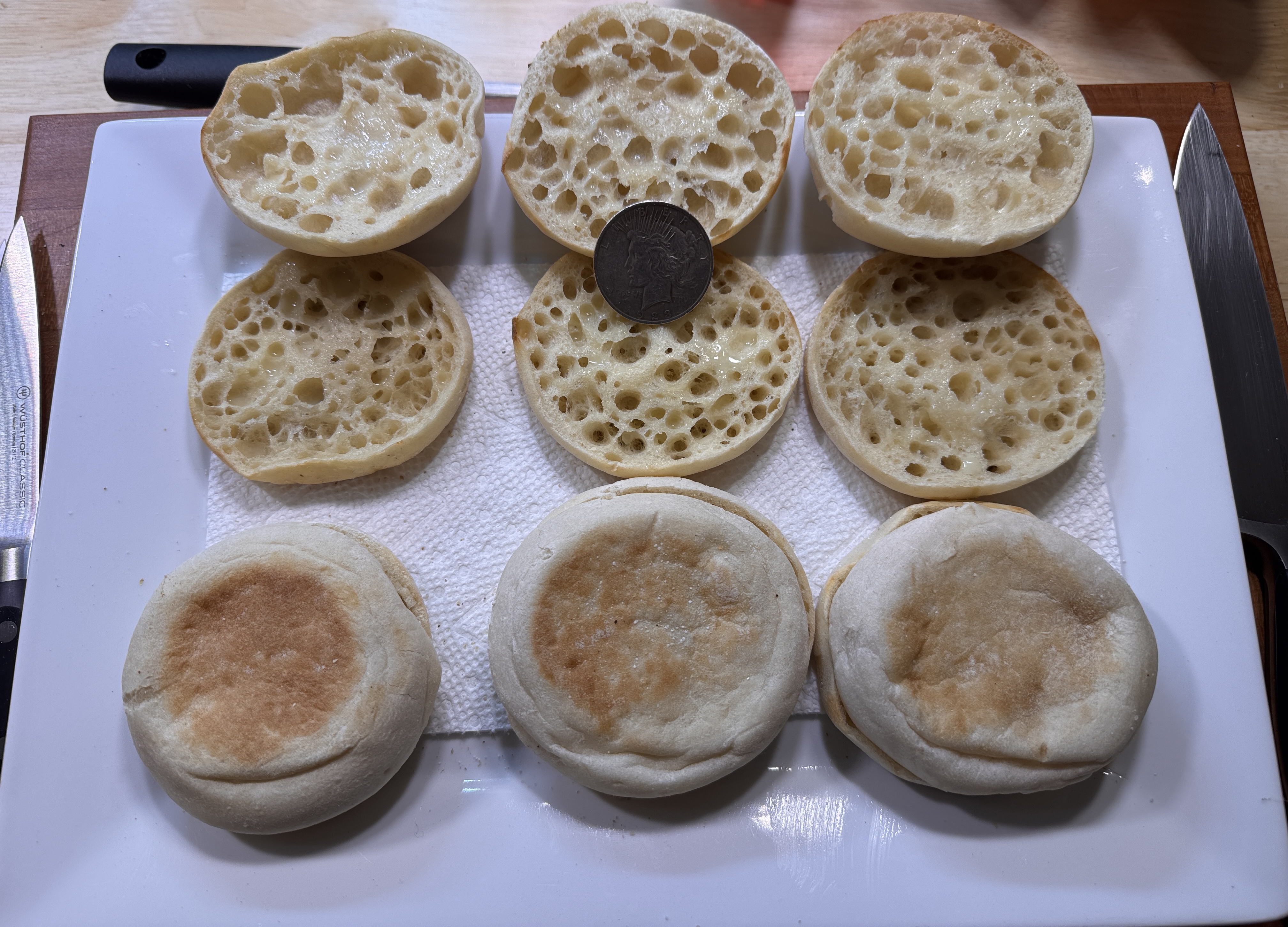 >>21982721English muffins split, toasted & buttered