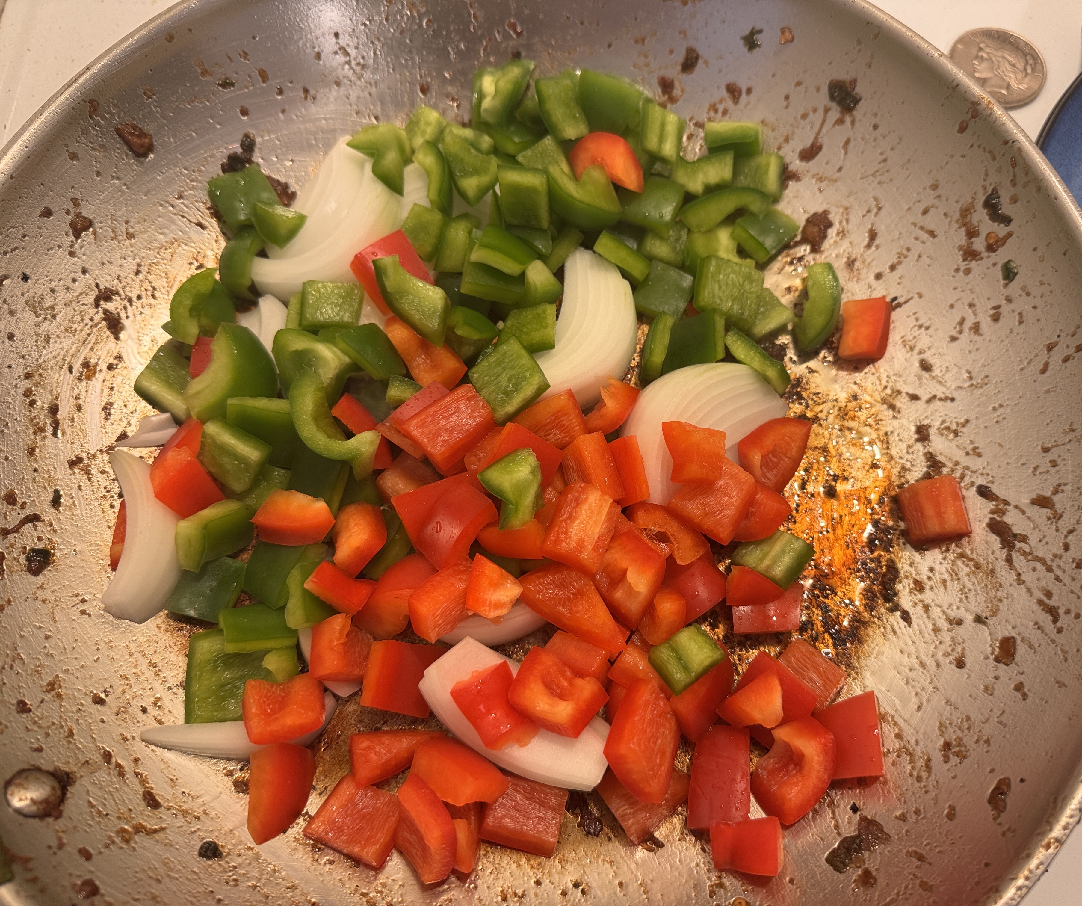 >>21985230peppers & onions in the same pan