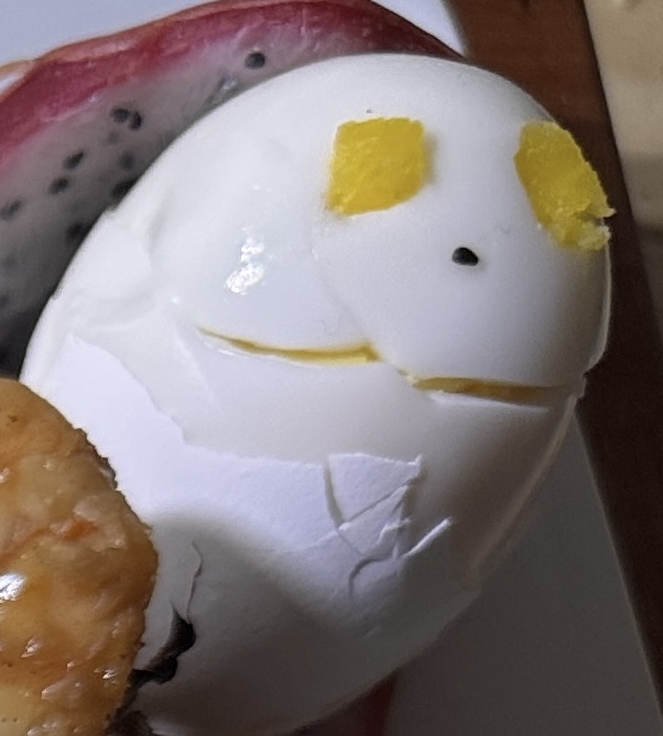 >>21985286aaaaaaand there we go! made the eyes and nose out of some of the soft egg yolk and a dragonfruit seed, and the dessert is topped with whipped cream and caramel cocoa dust. It's also super healthy!>bosh