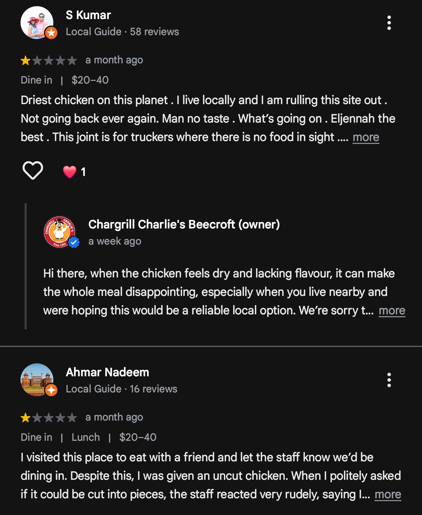 >>21990395>go to google>find establishment>go to reviews>sort by lowest>post on the chan as if these are typical experiencesvery rude and unfair anon. YA MUM HAS WORSE REVIEWS