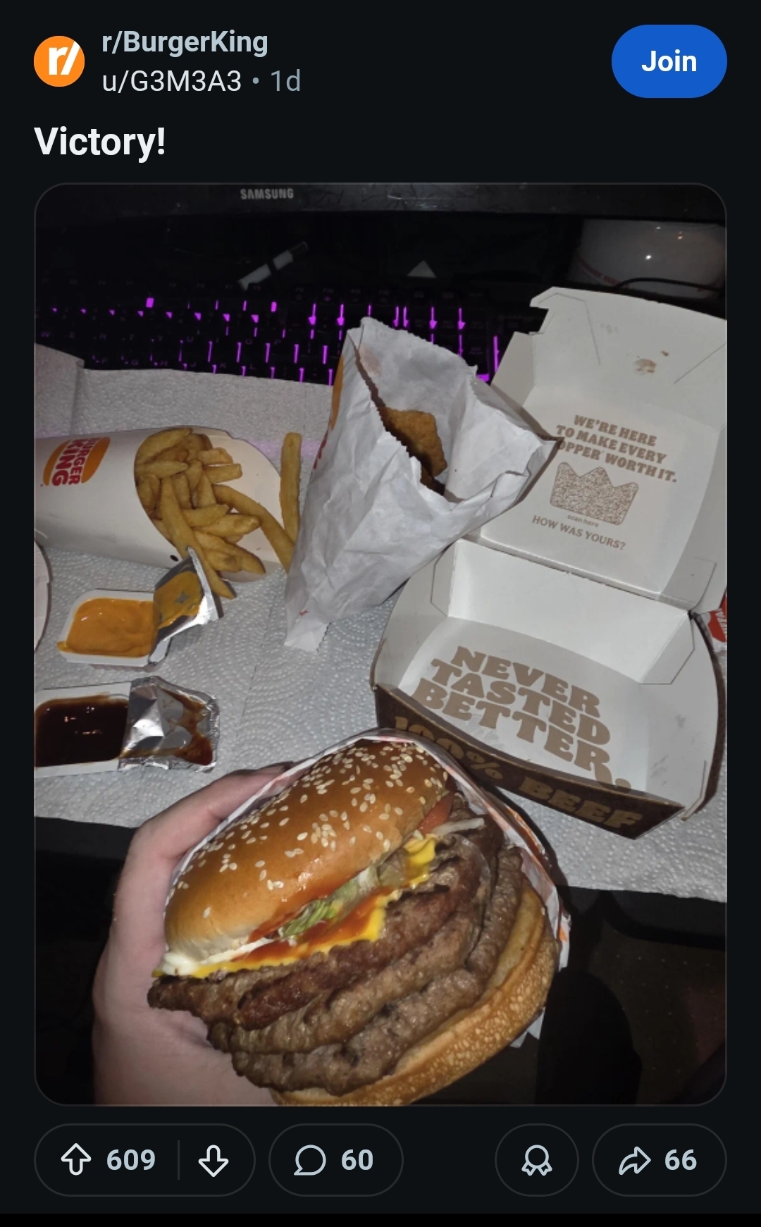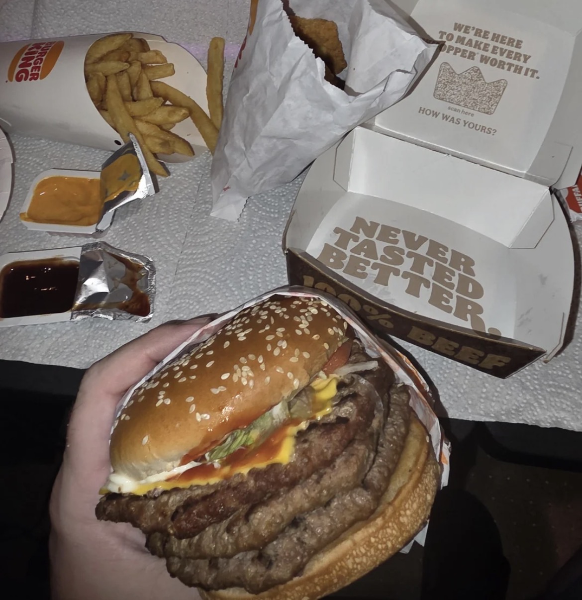 you know you guys wouldnt be so fat if you didnt get two sides with two sauces for your tripple whopper