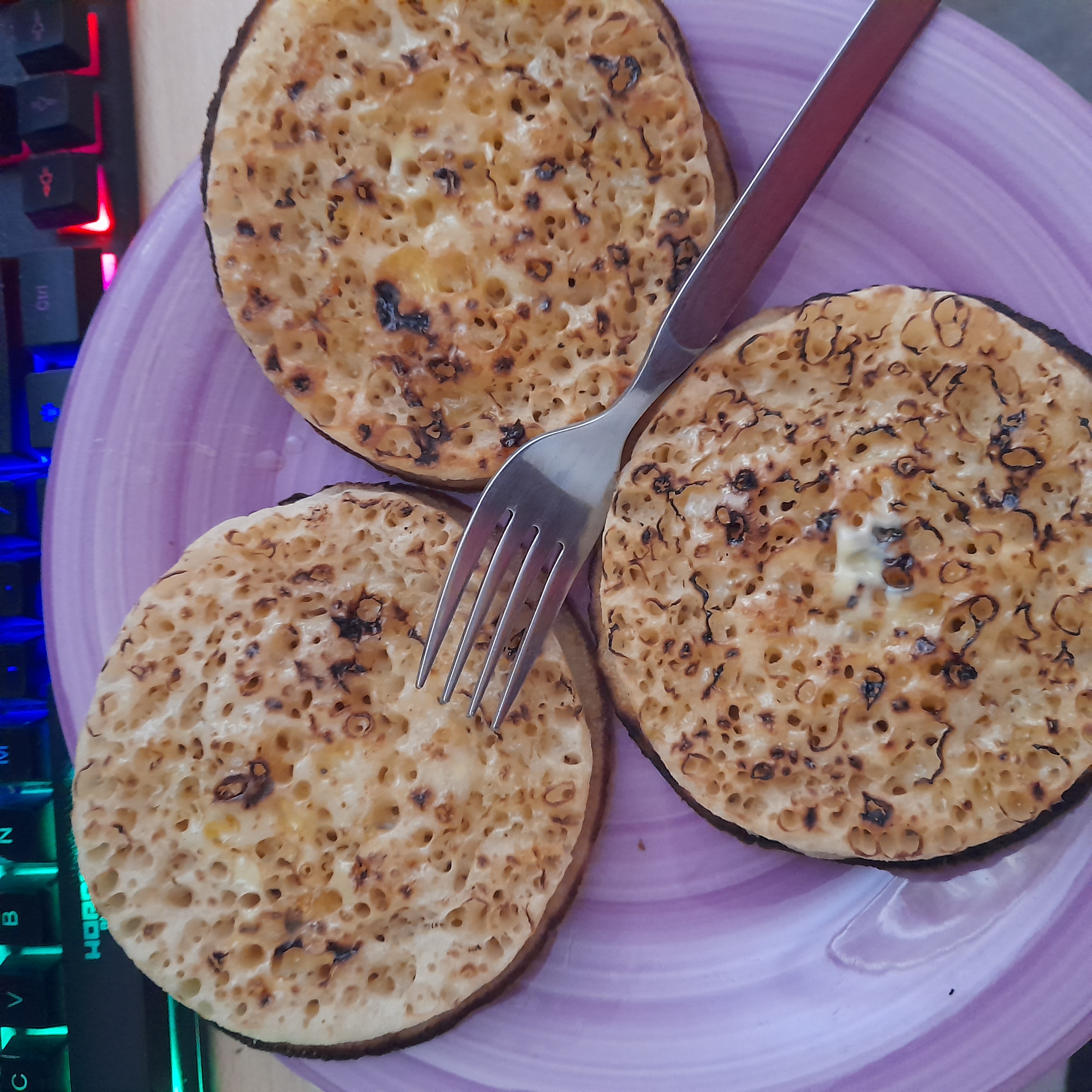 >>21992491>You should try it with butter and jam strawberry preservesI'm not doubting that it would taste good but I am a Brit, so I have real access to real crumpets and they are far superior., than slicing a muffin.Picrel is mine with butter . . . . . sometimes I add Marmite but don't tell anybody.