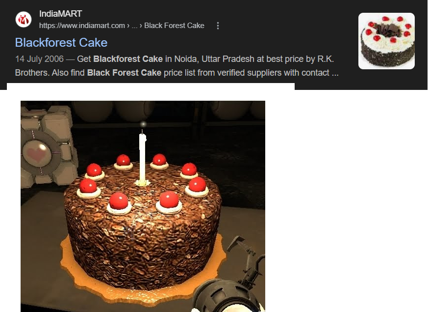 literally never heard of black forest cake before portal desu, so i way backed google and searched for black forest cake between 2000-2007, literally every black forest cake looks the same its not just because of a video game, guh