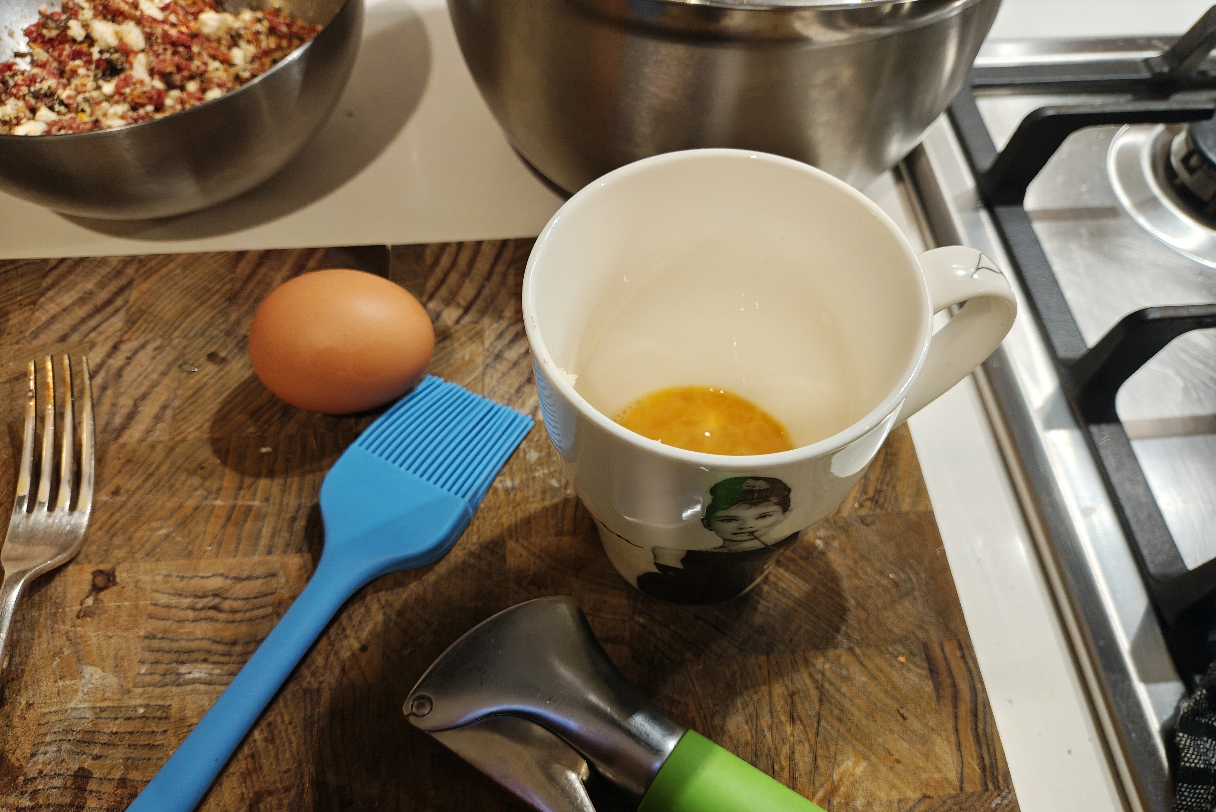 >always crush a little garlic in your egg wash. It's about the juice.-Archibald