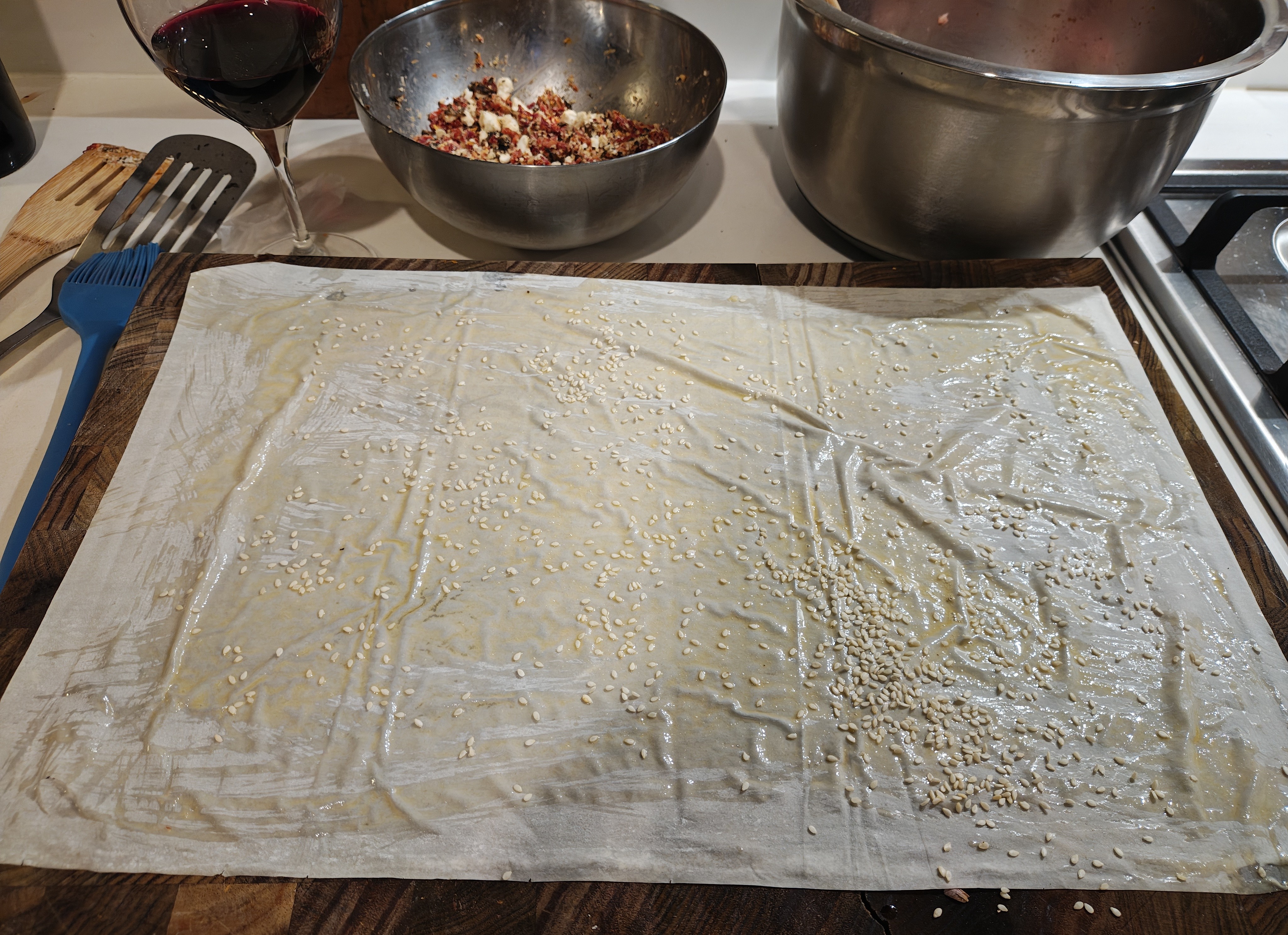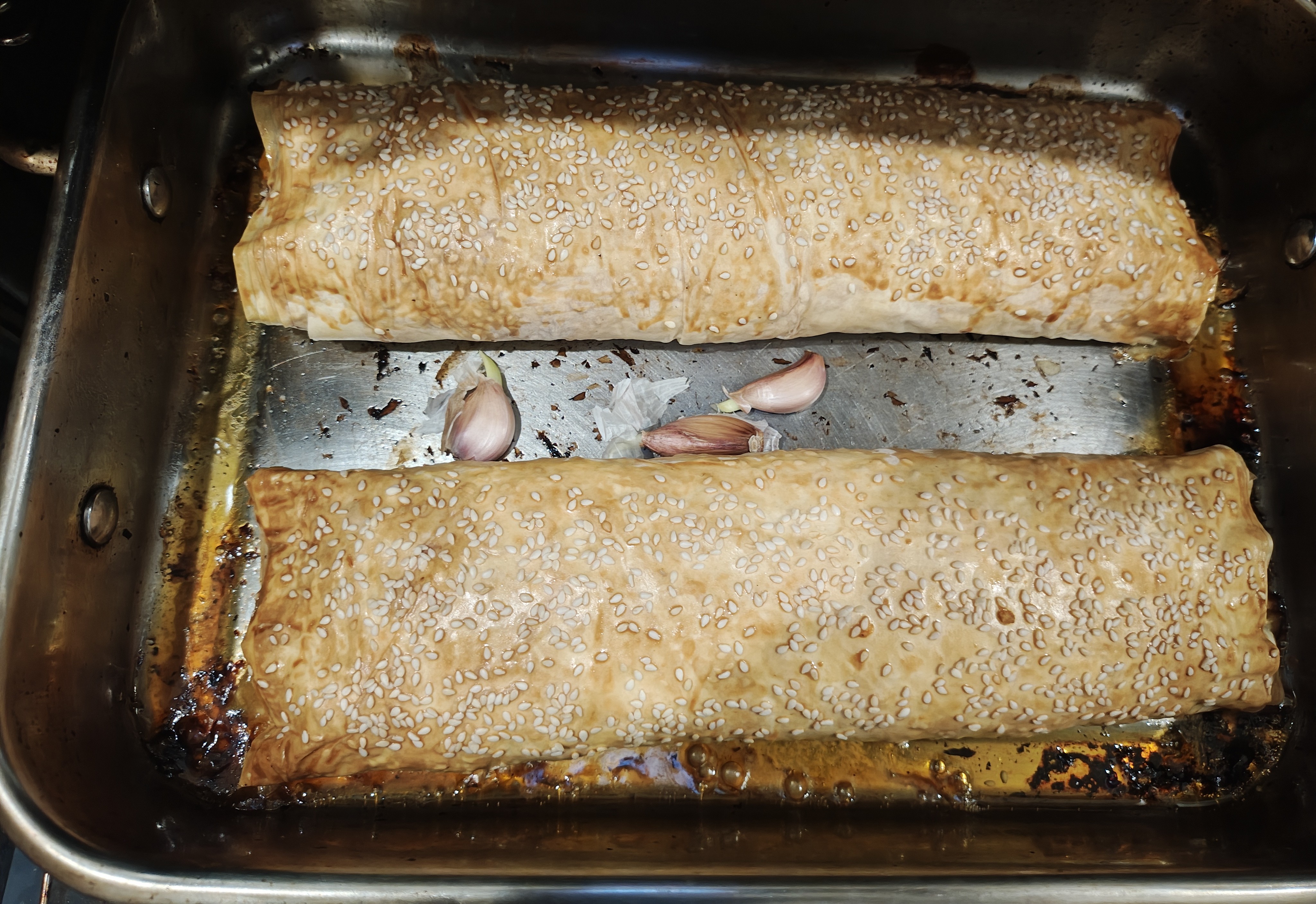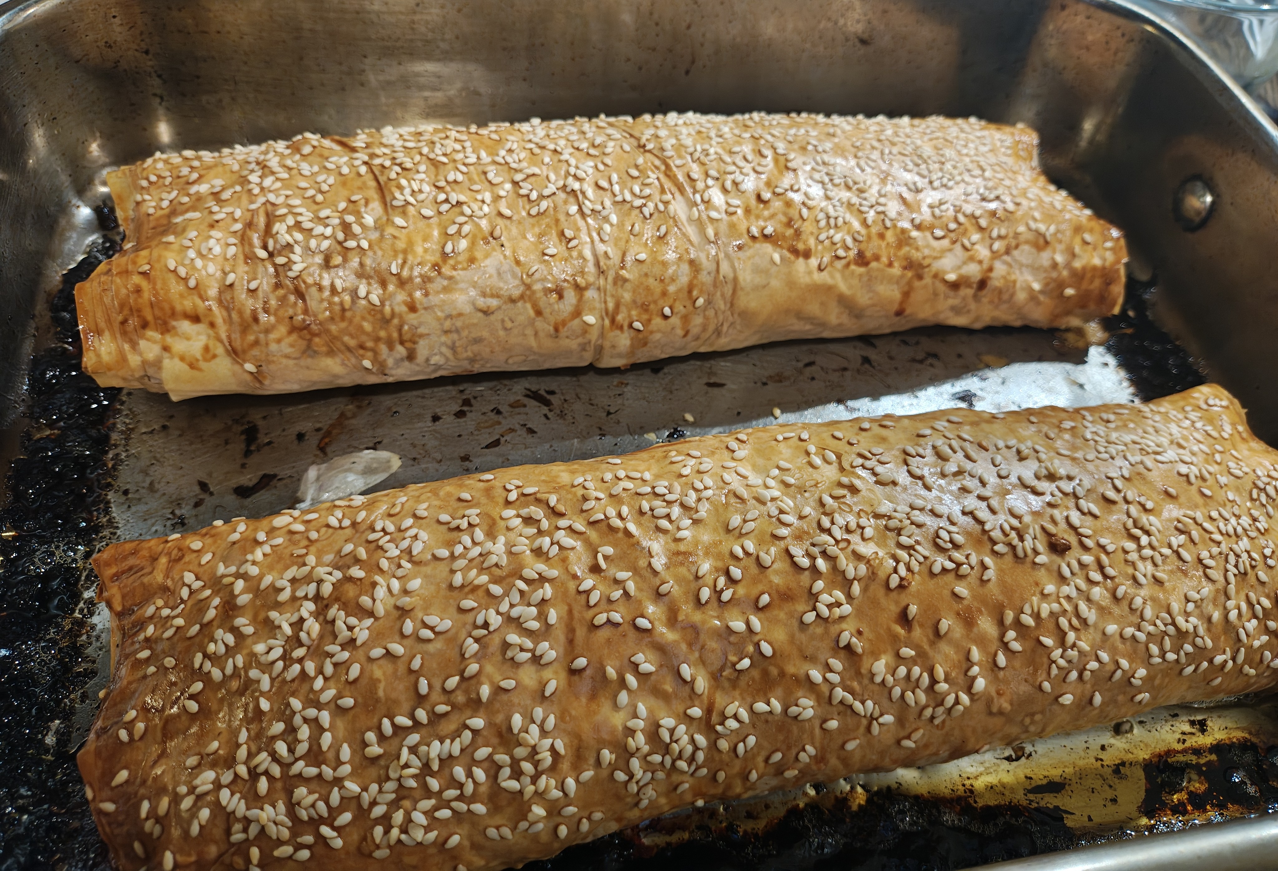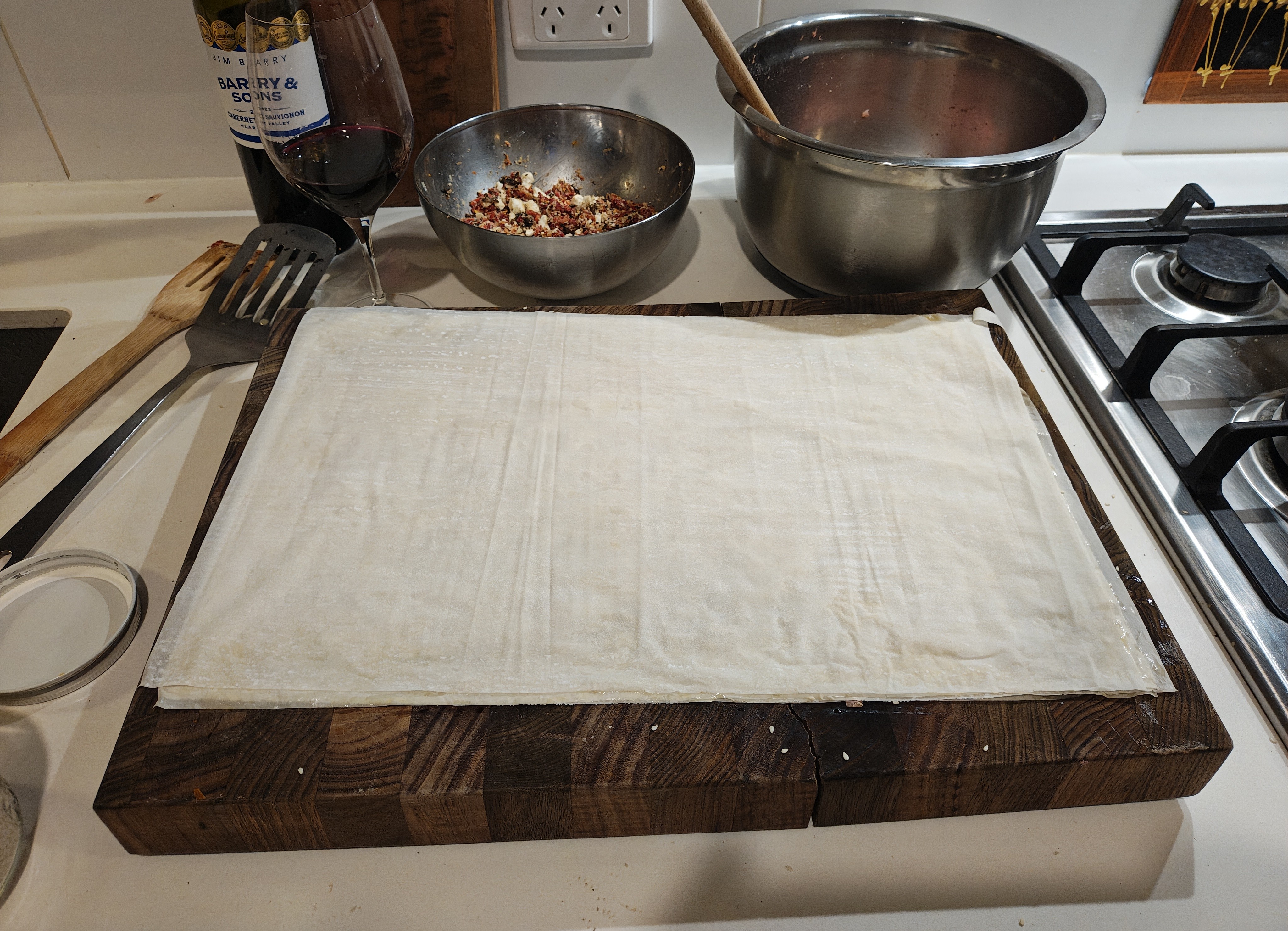 Ok. Now, the cook time discrepancy between the filo and the internal meat is quite considerable so these must be cooked low and slow. Probably 110c for about an hour. Maybe turning it up towards the end to crispify the pastry, we'll see.