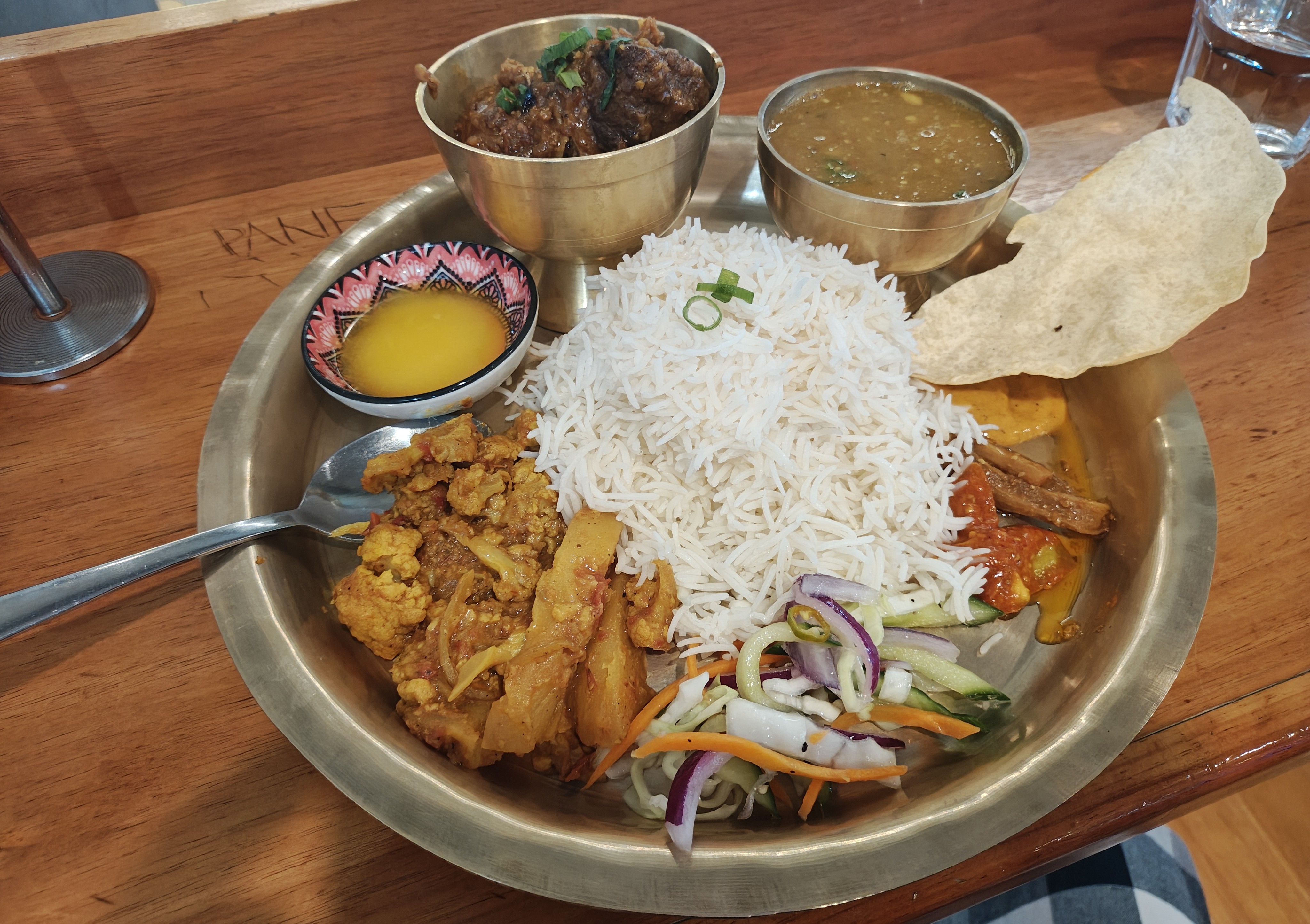 Nepalese goat curry with all the trimmings (that is genuine ghee)Compliments of Momo Station.