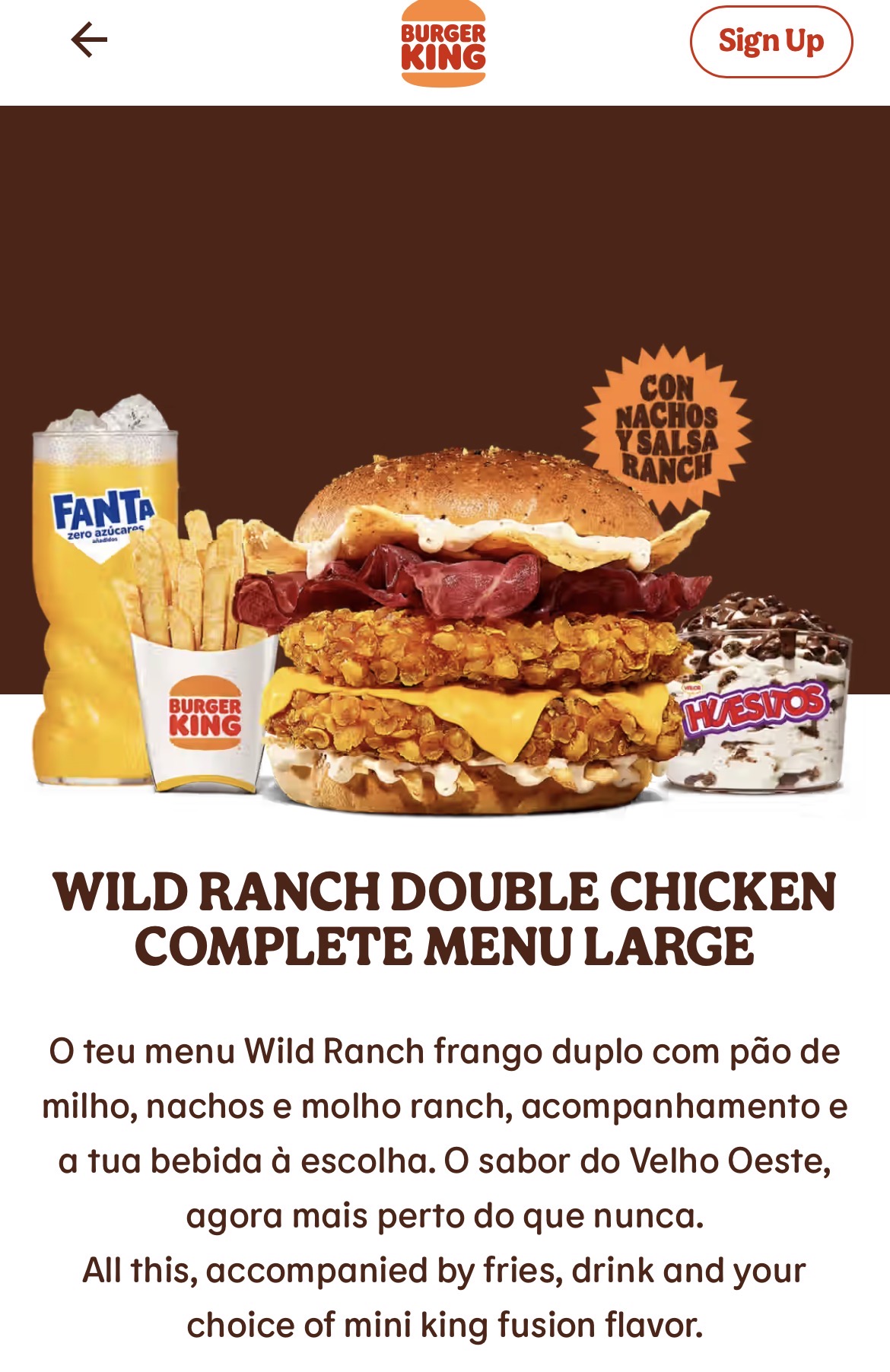 WILD RANCH DOUBLE CHICKEN COMPLETE MENU LARGE