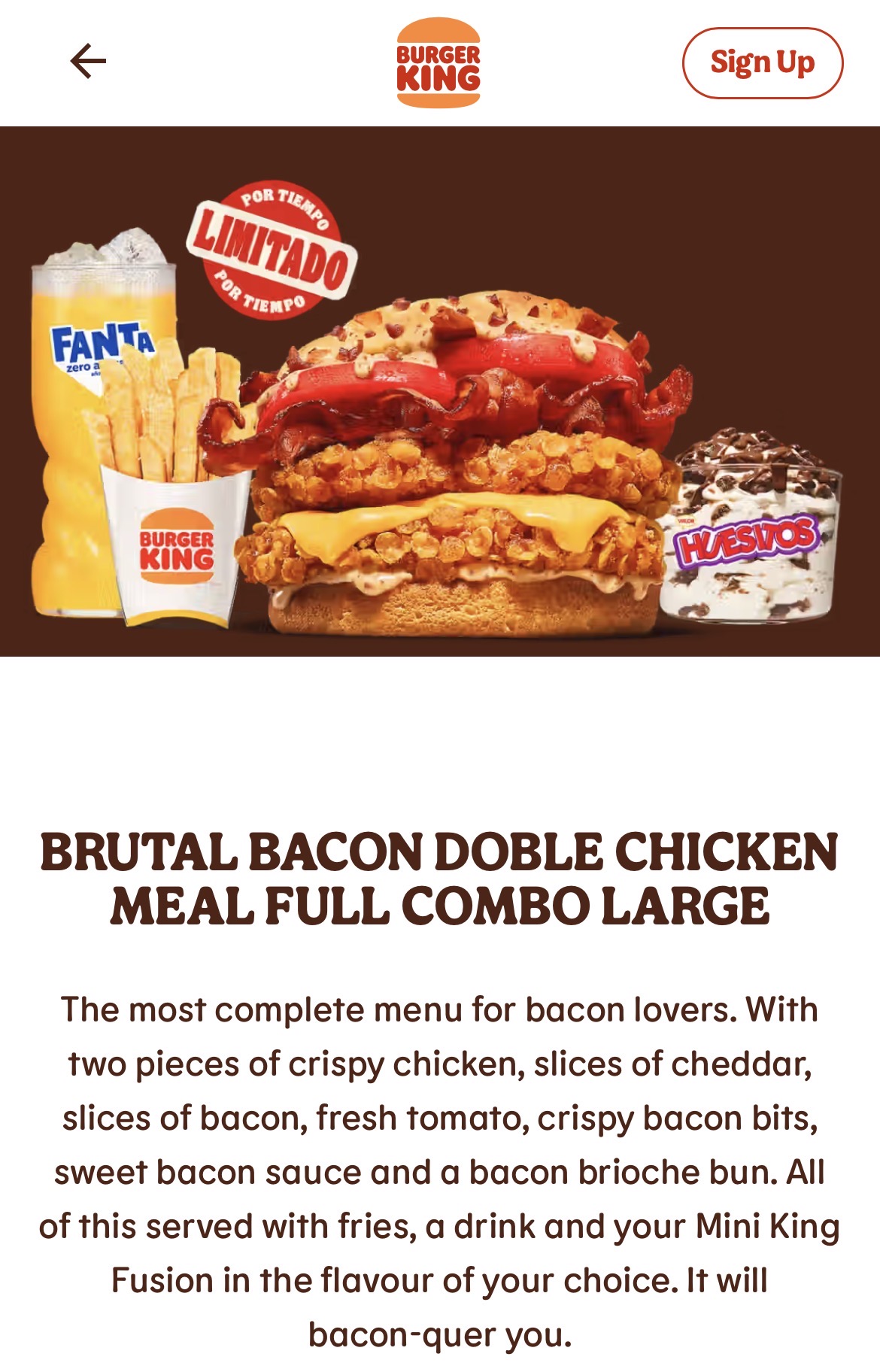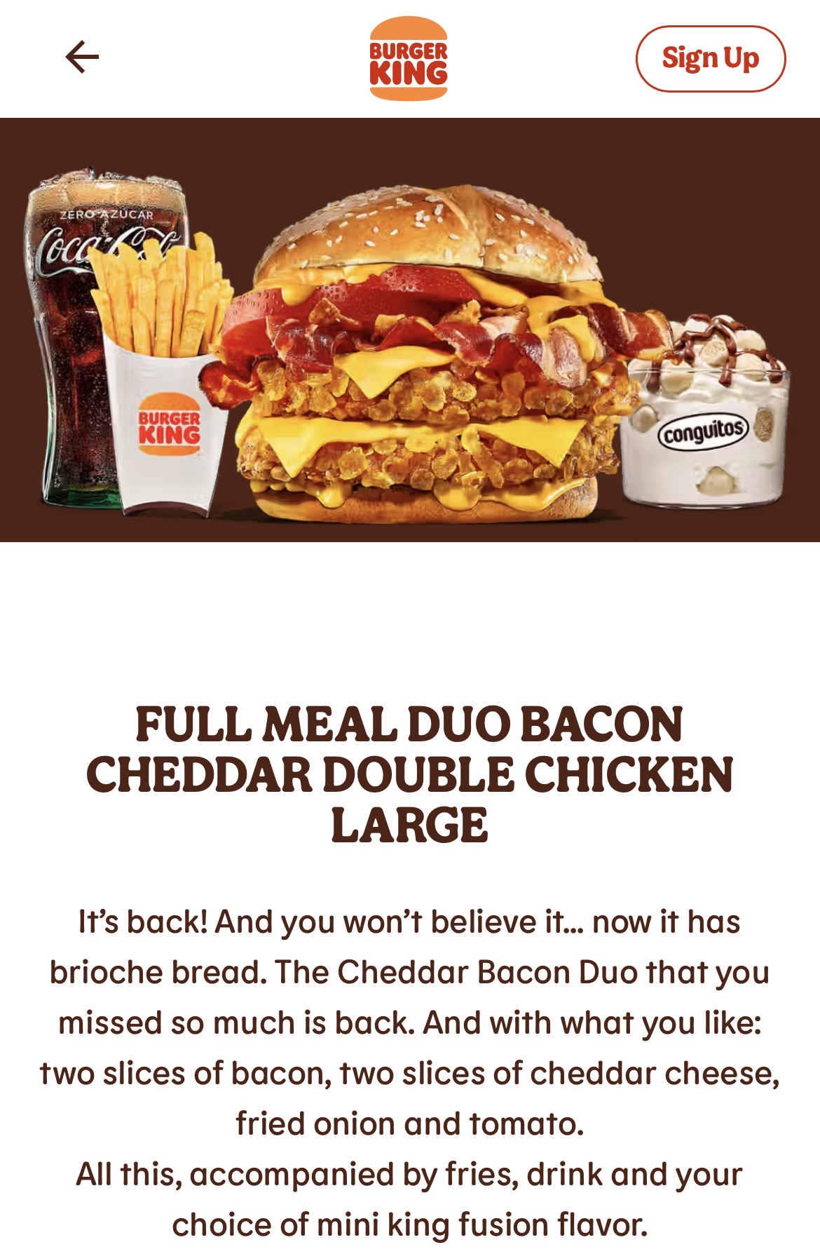 FULL MEAL DUO BACON CHEDDAR DOUBLE CHICKEN LARGE