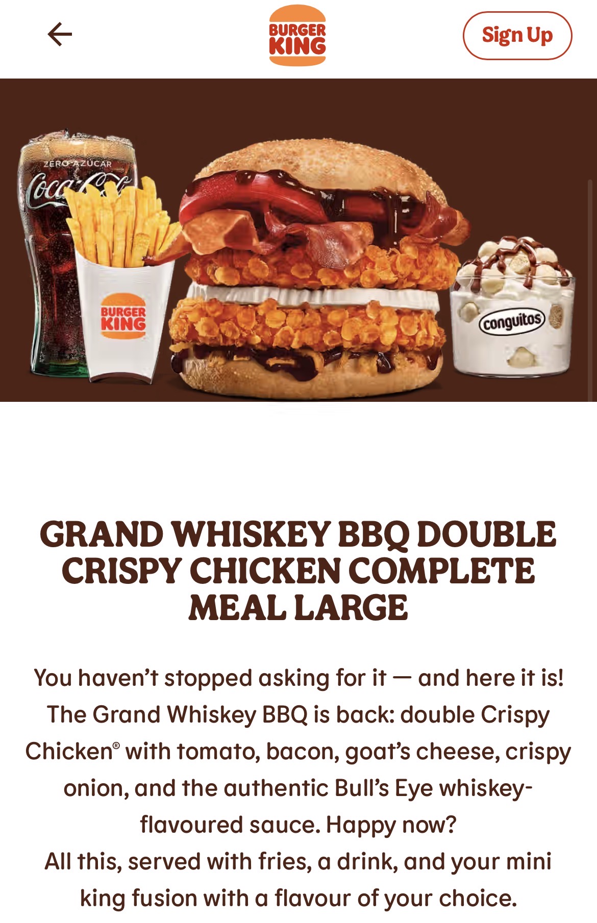 GRAND WHISKEY BBQ DOUBLE CRISPY CHICKEN COMPLETE MEAL LARGE