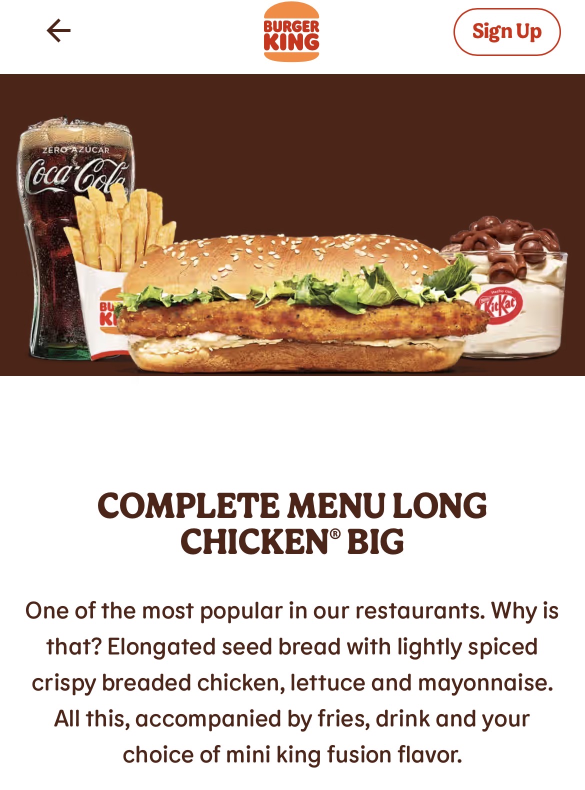 COMPLETE MENU LONG CHICKEN® BIG