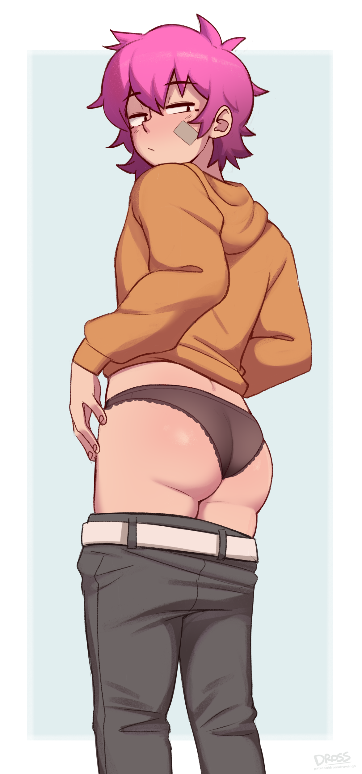 >>3918972They absolutely knew what they were doing with this design, the arrogant expression, those baggy clothes like a farmgirl in an old porno showing off his nubile figure, slightly slipping down where they hug the curve of his hip to give a peek at his slim torso tapering into his shapely ass, those trousers being ever so close to slipping all the way down to give us a full view of what they're hiding, his modesty guarded by a single dangling strap. Oh, and the fact that they bothered to give him a chest tuft .... we know what you're about, dog.