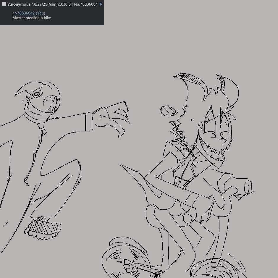 >>3995839Alastor is charming! Lucifer is stinky!