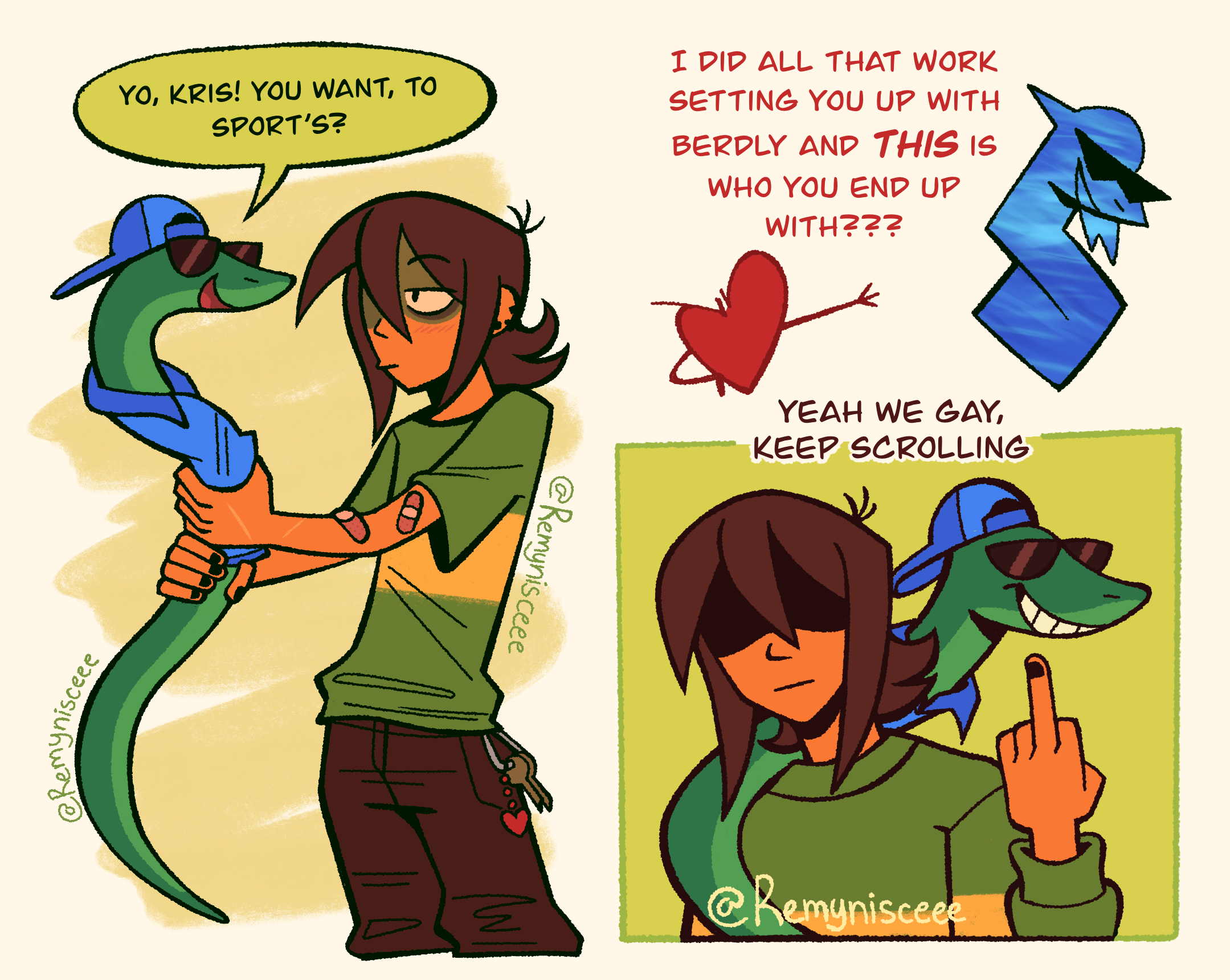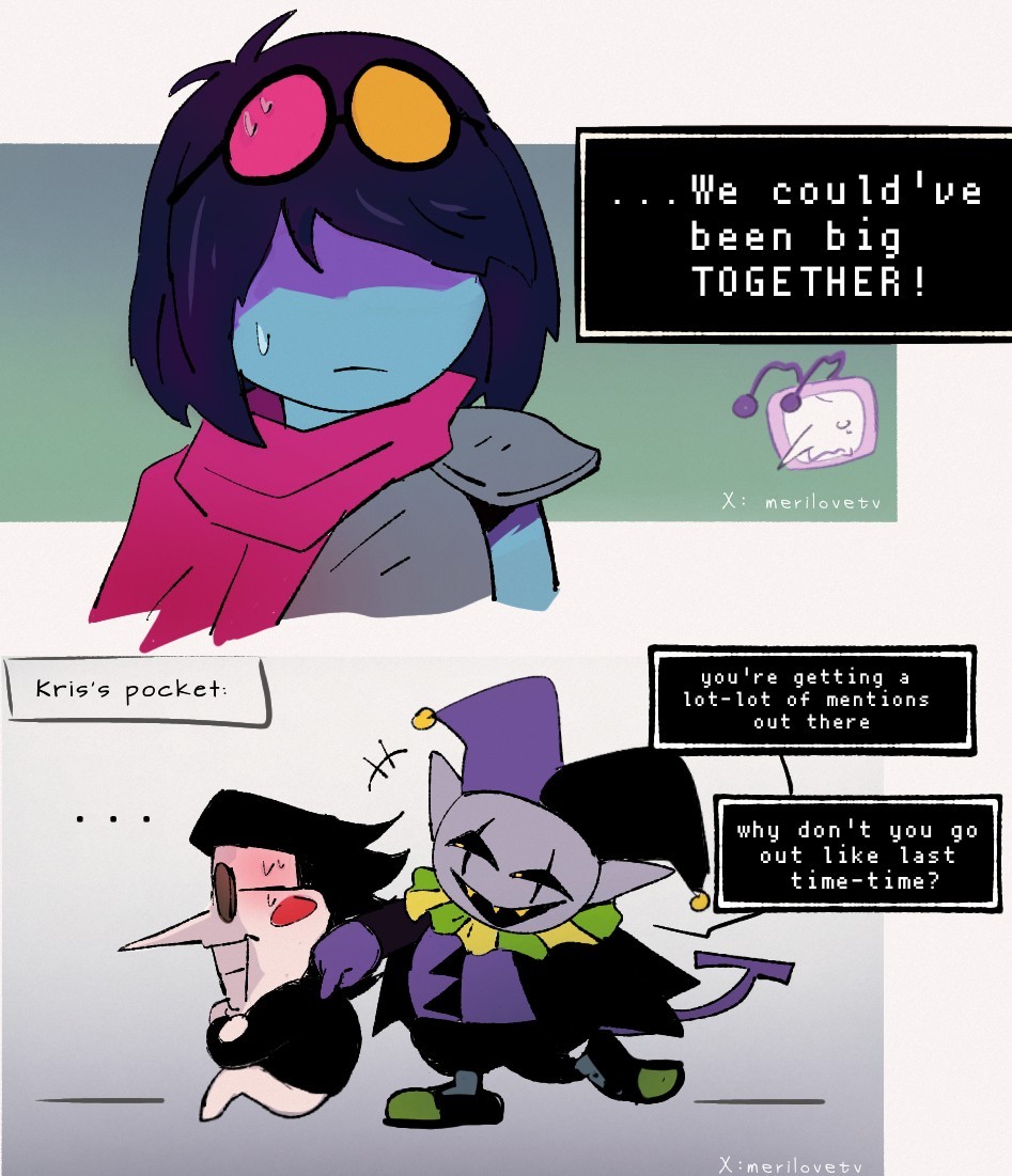 Either could be the case. Like King and Queen, Tenna’s role in the prophecy is most likely finished by the end of the chapter he debuts in. He probably won’t do anything important with the Fun Gang in future chapters beyond hanging around in Castle Town and getting involved in stuff about the Dreemurr family, Spamton and Mike. There’s also no incentive to make a Dark World in Mettaton’s house, and that choice could very much be final. However, even without Tenna, nothing is stopping more scenes that mention or feature Spamton and/or Mike from taking place in both branches. It’s just harder to imagine Tenna and Spamton reuniting and making up (or officially breaking up) when Tenna isn’t in a Dark World, if that is ever happening at all. There has been surprisingly more build-up regarding Spamton and Tenna than expected, to the point where it would arguably be weird if Toby didn’t plan to grant them at least some closure, but he might find it thematically appropriate to write Tenna moving on from Spamton, the Dreemurrs and TV World in one timeline and Tenna reconciling with the past and being with Kris in another. On the other hand, anything could happen. There’s that theory that suggests the entirety of Hometown itself might be engulfed by a Dark Fountain or the Roaring, which could be a contrived way for Tenna in Mettaton’s house to reappear again. Castle Town isn’t guaranteed to survive against whatever stakes the prophecy has foretold, so you could theoretically end up being forced to relocate all the Darkners away from that closet anyway. In the worst case scenario, Spamtenna content ceases completely, and this is all we will ever get. Who knows what’s taking place in Toby’s mind right now? All we can hope for is that he knows what the fans want and can deliver. At least replaying, walkthroughs, wikis and save file editors are always available options if you make a regrettable choice while playing.