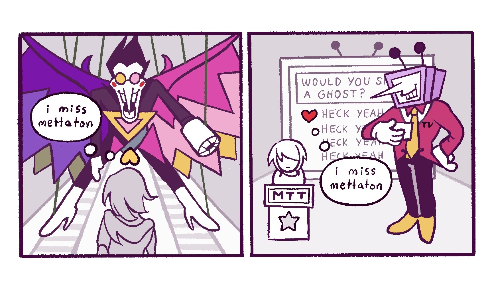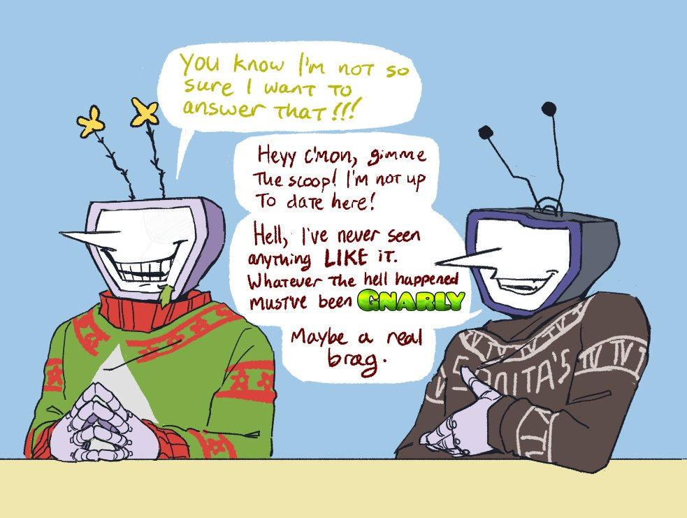 so, do we think toby's really gonna lock all the ch5 spamtenna content behind the objectively meaner branch of the re-housing decision tree from ch4, or do we think it's more likely that there will be some plot contrivance that causes tenna to come back to castle town even if we gave him away to mettaton?