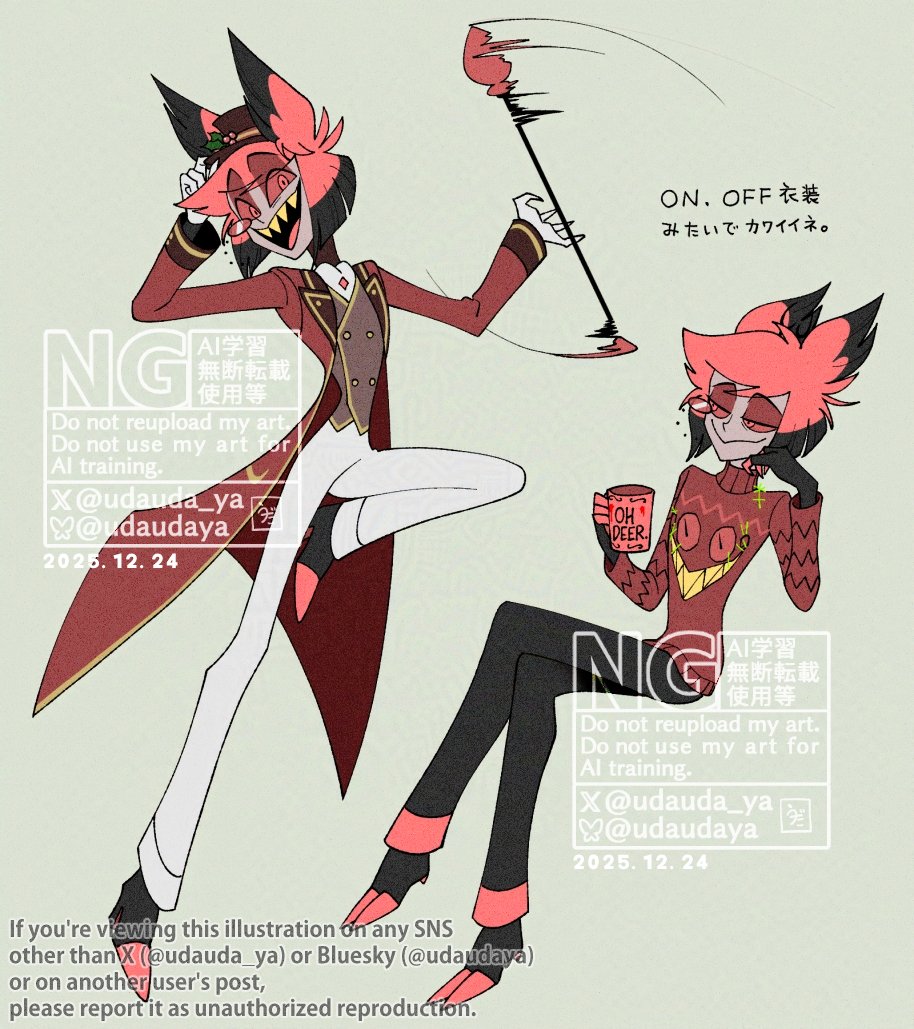 All I Want for Christmas EditionWelcome to /Deer/!>What is /Deer/?/Deer/ is a thread for fans of Alastor, the Radio Demon, from Amazon Prime’s hit series Hazbin Hotel. /Deer/ is a safe space to discuss, promote, and create content for our favorite deer man!>Who we are…We are deer friends from all walks of life who come together in this thread to share content related to Alastor. We are inclusive and welcome everyone who is interested in the Red Stag.>Who are the Alasisters/Stag Sisters?Alasisters/Stag Sisters are a collection of devoted riako yumes who make up the Cult of the Red Stag. They honor their F/O by partaking in blood and sex rituals on his behalf.>What are the rules?* Respect all deer friends.* Respect our husbando.* Ignore all bait posters.* Stay on topic. This is a solo Alastor thread and ship art/discussion is not allowed.* Keep it varied! A healthy thread has a number of topics.* No ship warfare, ship material belongs on /hhg/.* We do not kink shame, however NSFW content is not allowed. Do not force your kinks on others. Go to /trash/ for pornographic content and discussion.* Lolisho must be SFW.Questions? An in-depth explanation can be found here: https://pastebin.com/1NbtaKCm>OP Templatehttps://hazbinhelluvageneral.com/deer-template>Previous threads:>for /trash/:https://desuarchive.org/trash/search/subject/%2Fdeer%2F/type/op/results/thread/>for /cm/:https://archived.moe/cm/search/subject/%2Fdeer%2F/text/%2Fdeer%2F/>Deer related links:Hazbin Hotel Pilot: https://www.youtube.com/watch?v=Zlmswo0S0e0/hhg/ website: https://hazbinhelluvageneral.com/Shared Cytube channel: https://hazbinhelluvageneral.com/hhg-ct-redirect/Creator's YouTube channel: https://www.youtube.com/user/SpindleHorseOfficial website: https://www.hazbinhotel.com/Psyanon fanfic recordings: https://hazbinhelluvageneral.com/psyanon-recordings/Fanfiction from our /Deer/ residents: https://archiveofourown.org/collections/hhg_fics