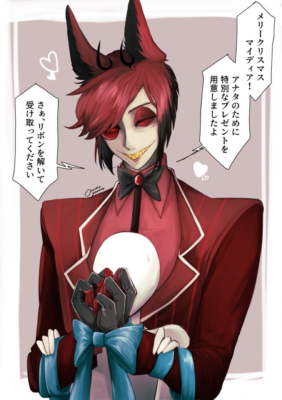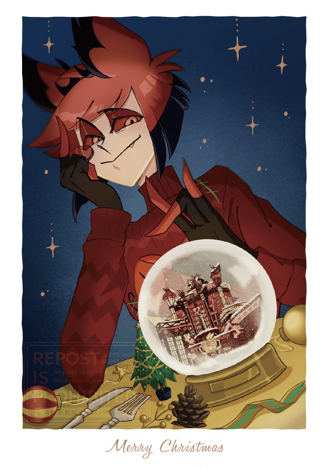 Well, it's already past midnight here and I just finished wrapping presents, so... Merry Christmas /deer/! I wish everyone many kisses under the mistletoe with Alastor.