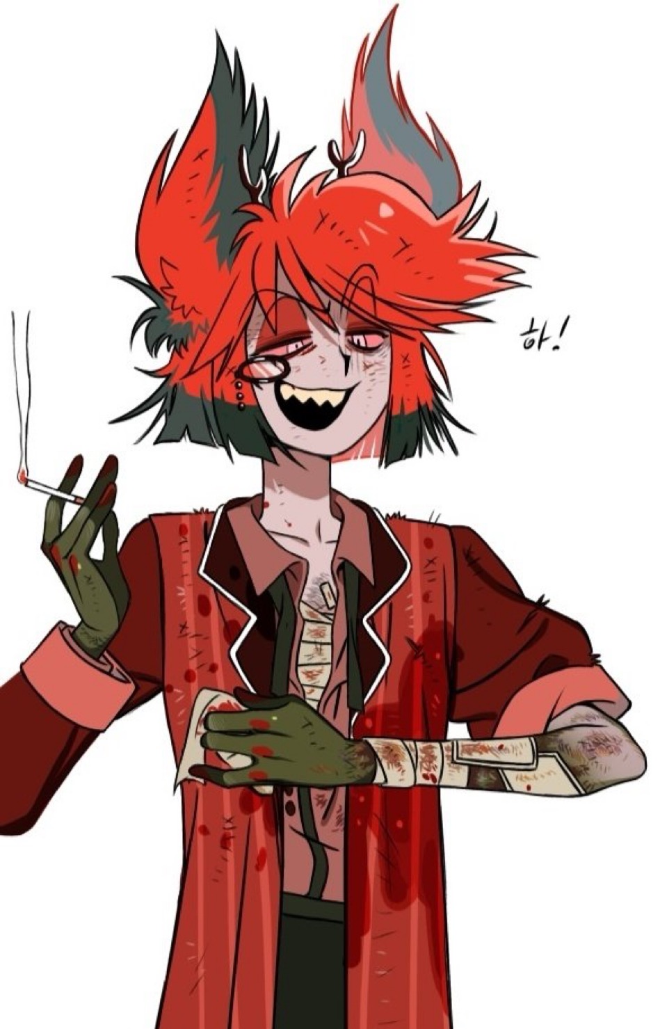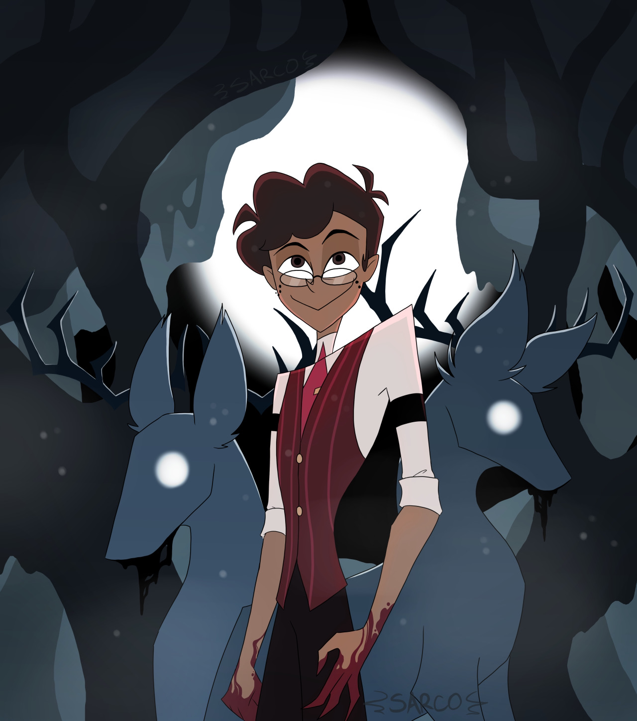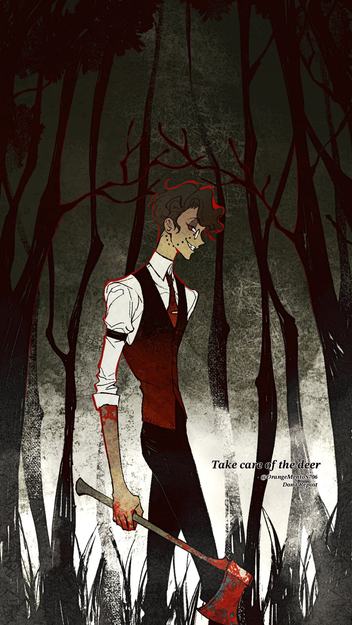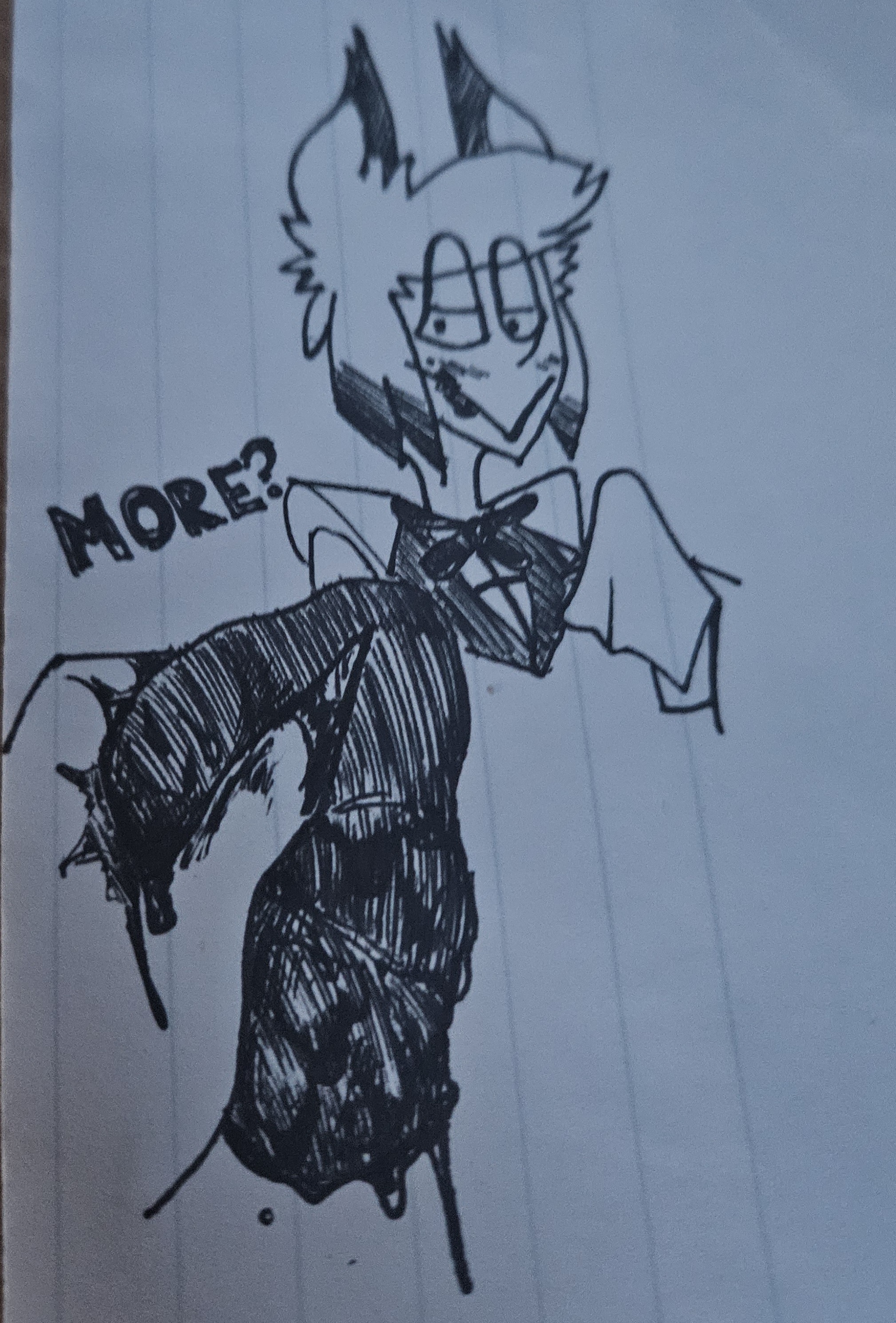 It is pretty much done! need to do some editing and rewriting to be a bit better but yeah Deer bones is done!>Alastors Doe-eyed confusion continued as Anon’s finger slid deeper into the bullet hole in the skull> This was hilarious!>…>something touched anon's finger>Something inside the skull>It wasn’t bone>It wasn’t dirt>it felt hairy>it moved on its ownNot reflexively.Not passively.>something living>in an instant anon finger was out >but he still felt something on his finger he looked down and there it was.>it was a SPIDER >Big.>Black>Its legs splayed across his finger like it owned the damn thing.>Anon screamed>it was not dignified to anons eternal shame>it took a second for Alastor to snap back to reality, but as soon as he did, he was greeted with a site to see>anon thrashing on the ground screaming as a relatively small spider skittered quickly upon him.>Alastor Grinned liked never before>And Alastor laughed at anon>It started as a breathy huff, one hand braced against a tree as he steadied himself, vision still swimming from whatever resonance Anon had done>He straightened just enough to take in the sight properly.>Anon on the ground.>Flailing.>Screaming bloody murder as a spider no bigger than a bottle cap skittered across his sleeve before darting away into the brush.
