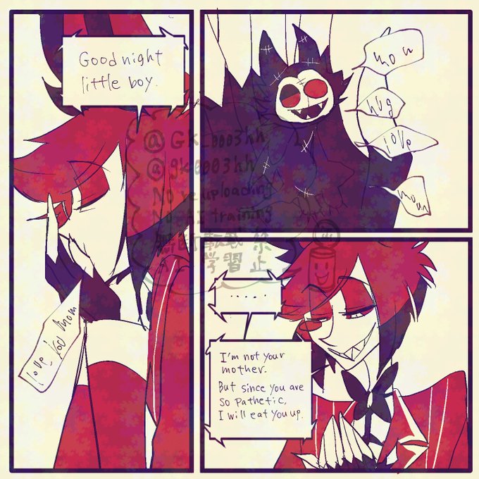 Okay! I've finally had some time to myself...>>4006289Beautiful work. Made me blush numerous times. Alastor sounds so romantic describing his childhood, I love how you described how dreamy he looked while he was recalling it. Love me some French Al. >*chef's kiss*Thank you for sharing. :3>>4007604>>4007605Anon is a big baby! What is Alastor planning? I trust it not. Fingering his bullet hole is too erotic!
