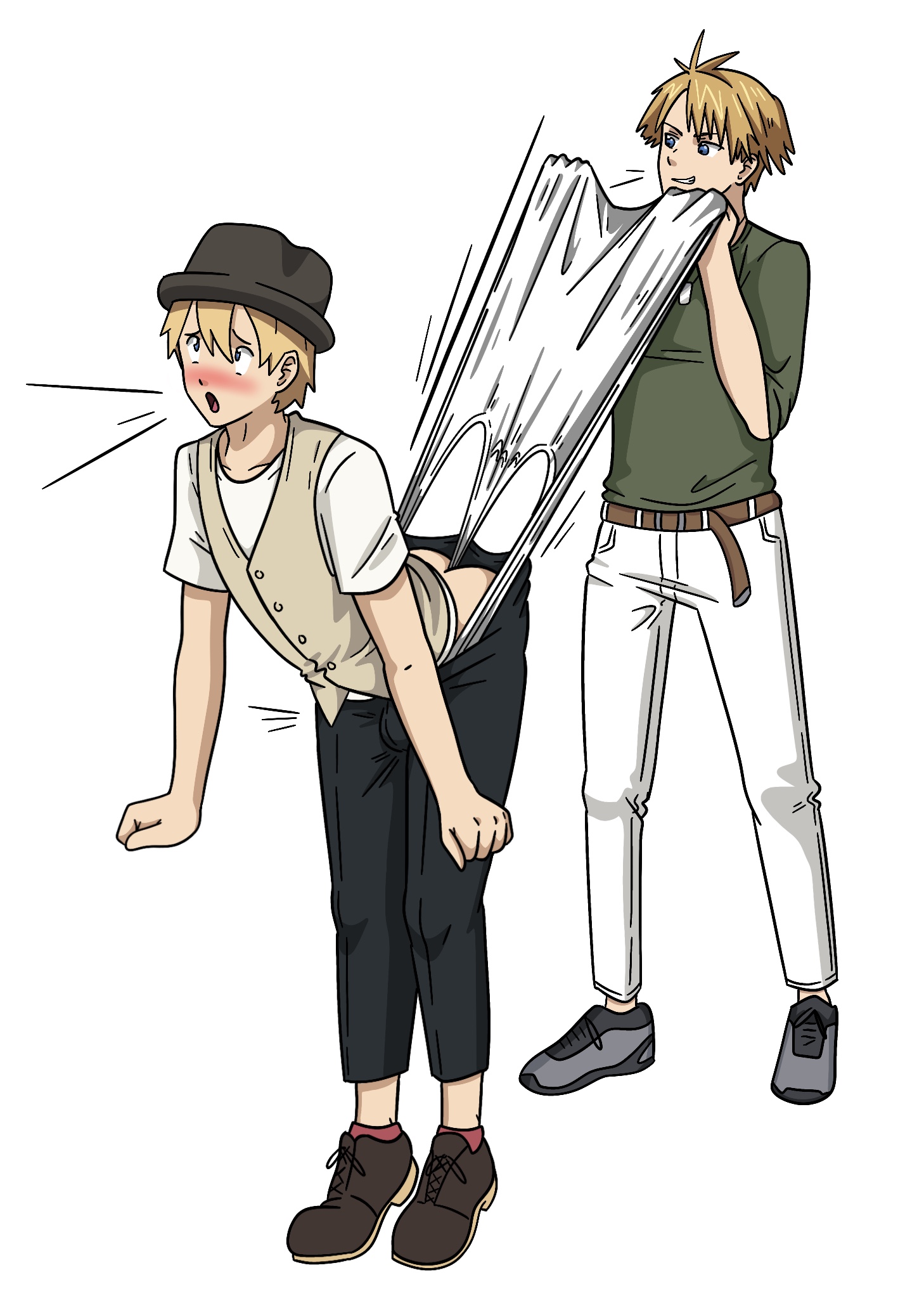 >>4014410Yeah, I got both the Kieran/Allister wedgie and that Ken one lol (and also this one!). I was thinking of the egg boy from Persona 5, but I honestly have no idea...I like Ken the most because I imagine he would be wearing little girl panties under his dark shorts haha.Still, good list. I think I would go for Shinji and Sig...or maybe I'll just commission Allister again lol