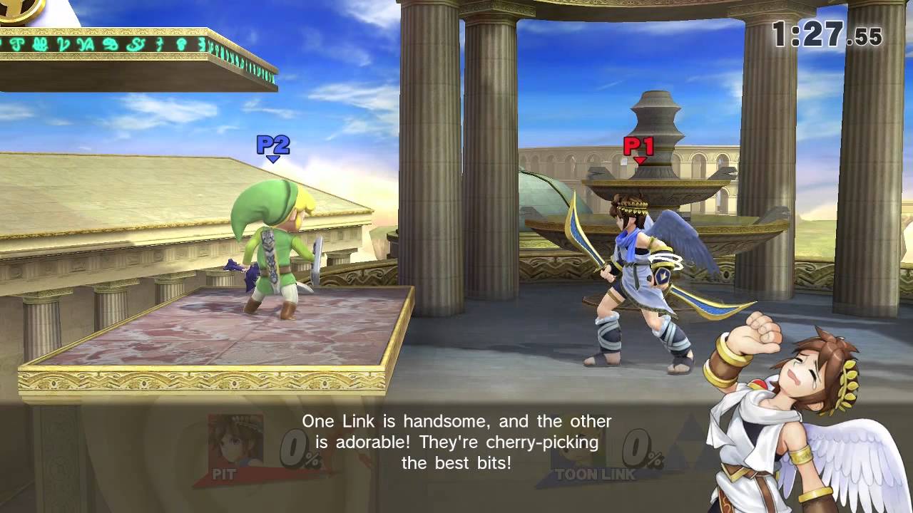 >>4015742>>4015746Back when Brawl was the most recent Smash game and everyone was fawning over the cinematic adventure mode, Link x Pit was a notable ship. It wasn't as popular as Ness x Lucas (sometimes featuring Pokemon Trainer, Marth and Ike), but it had its good share of art.