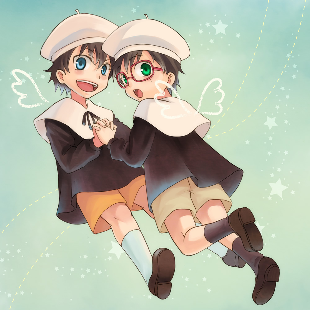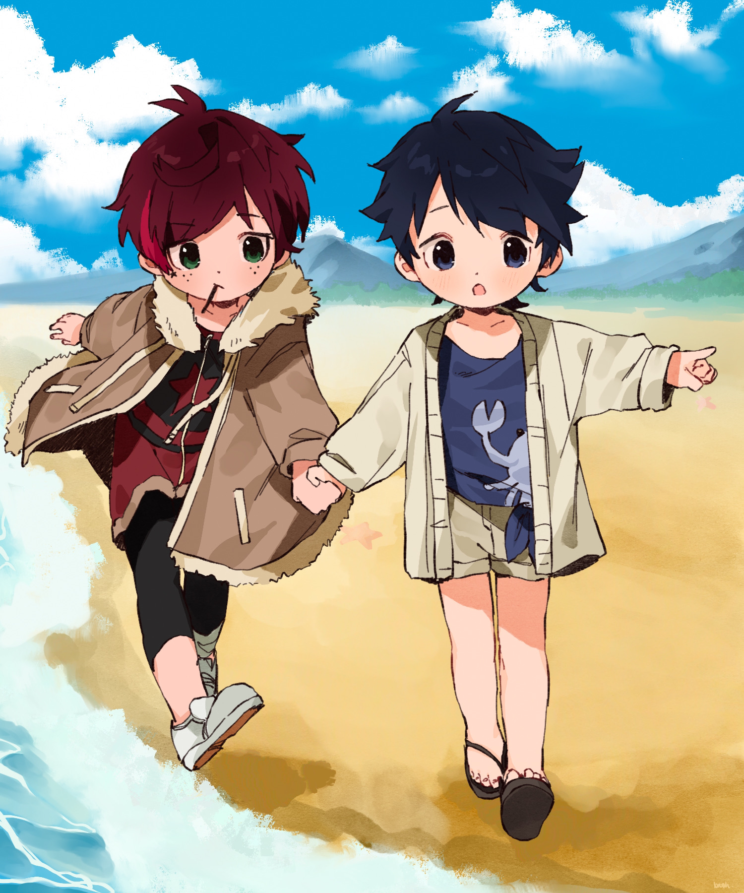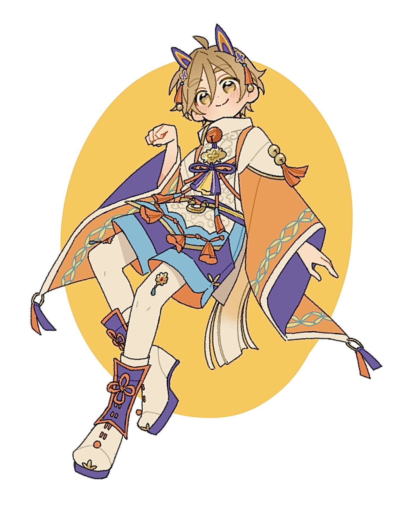 I love it when artists paint boys wearing modernized traditional clothing with shorts ToT its just a perfect combination