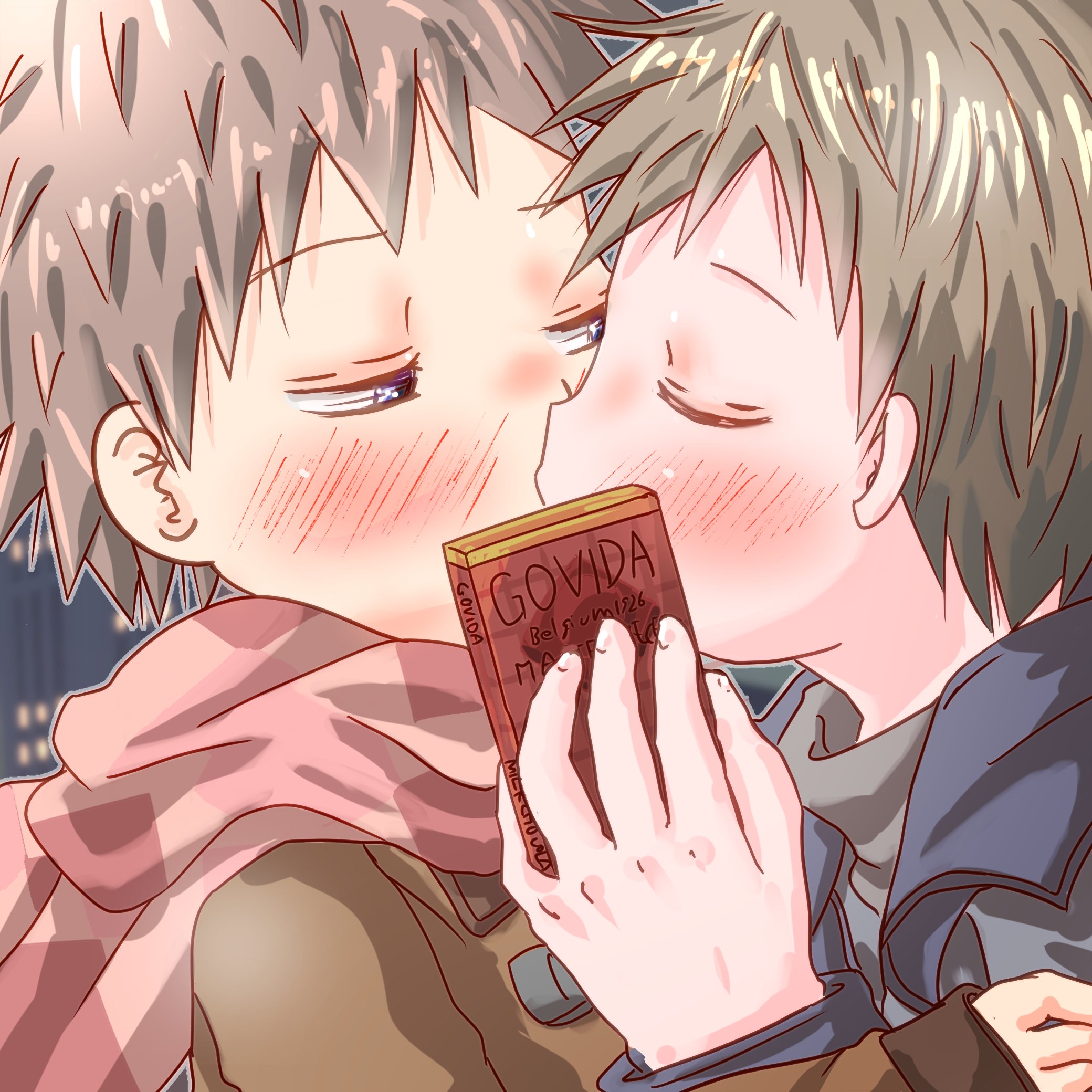 In Japan, valentine's day is when boys receive chocolate. So any pic where a boy is giving it is implicitly homo. I think that's neat.