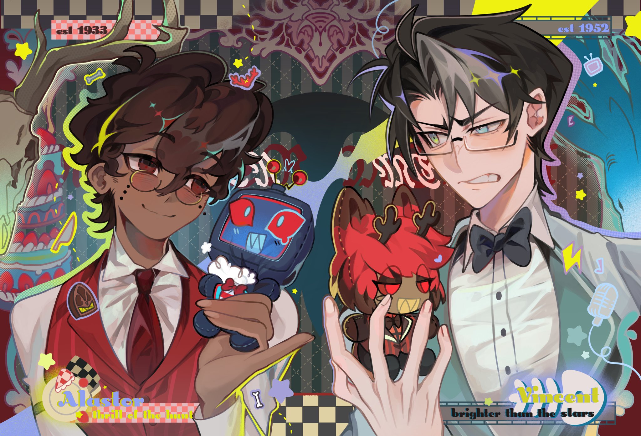 >As disappointing it is that anyone in charge at Spindlehorse refuses to make almost any merch with Alastor and Vox even in the same picture