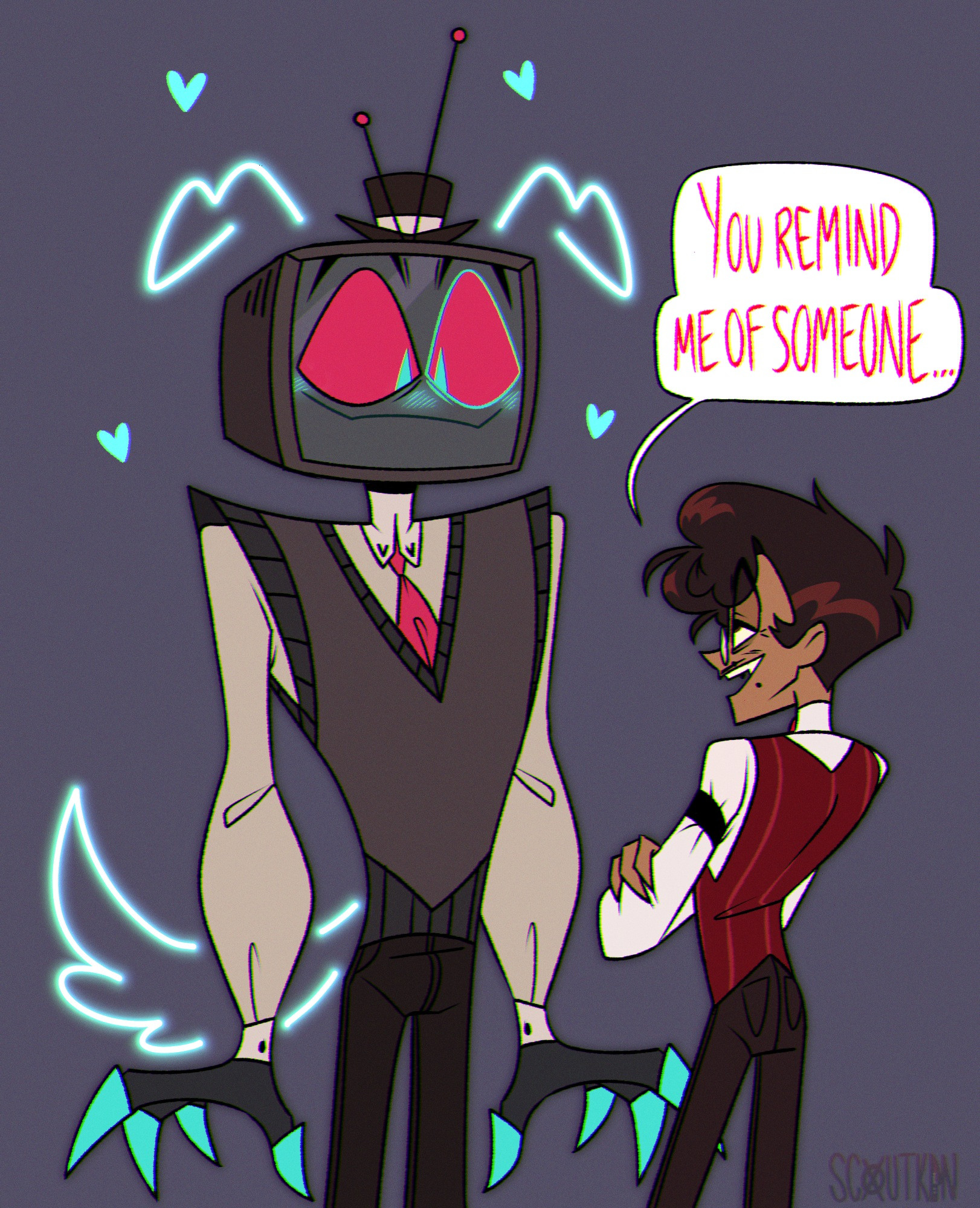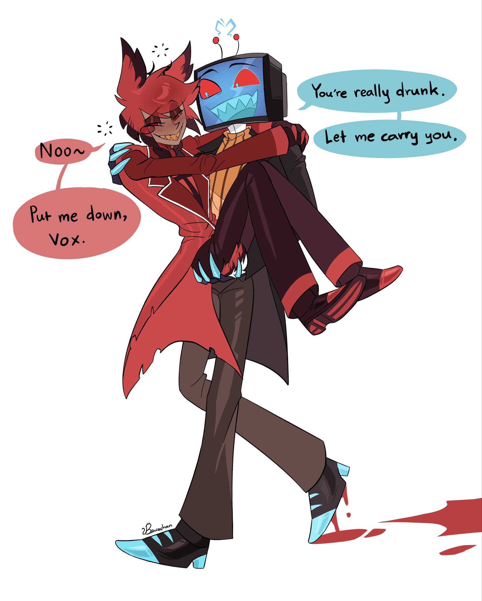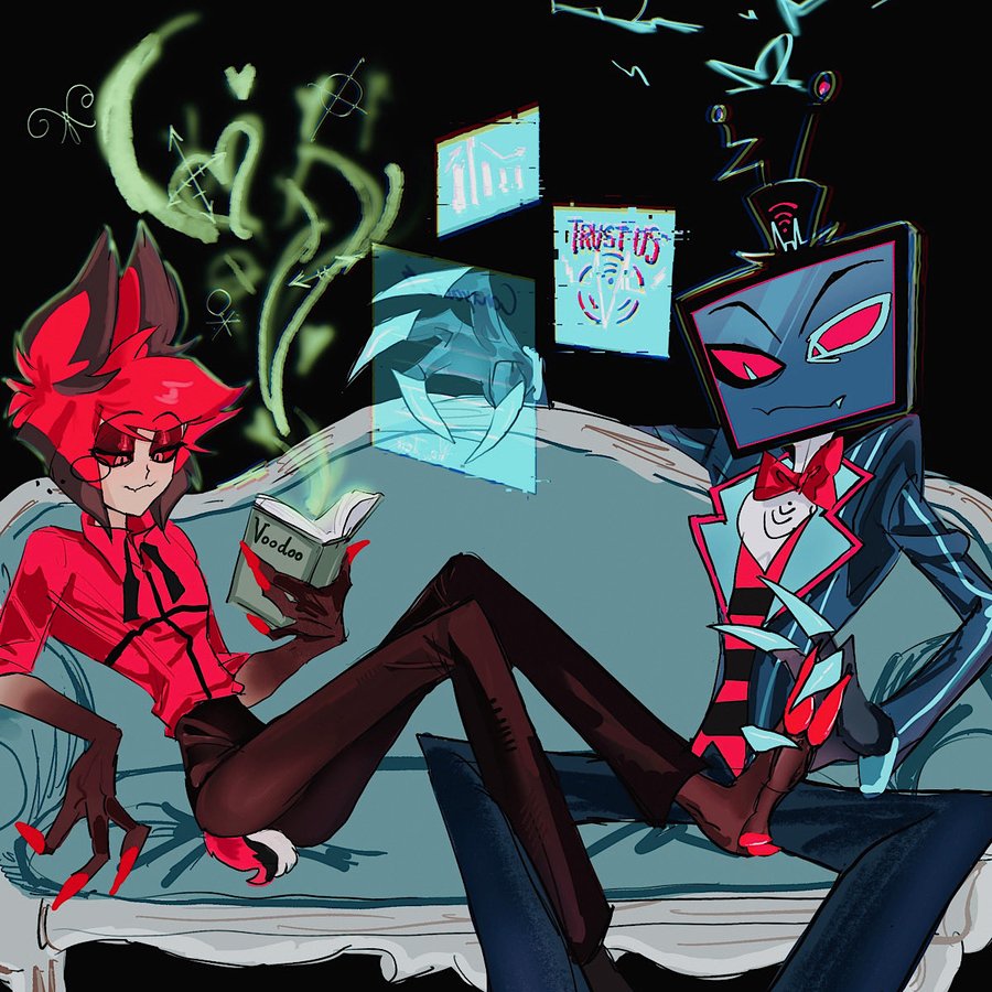 I’m not the biggest fan of Amir but him, Christian, and Tia are carrying hard right now because anytime any of them post or say anything radiostatic related we get a new flood of fanart. As disappointing it is that anyone in charge at Spindlehorse refuses to make almost any merch with Alastor and Vox even in the same picture at least they’re making up for it.