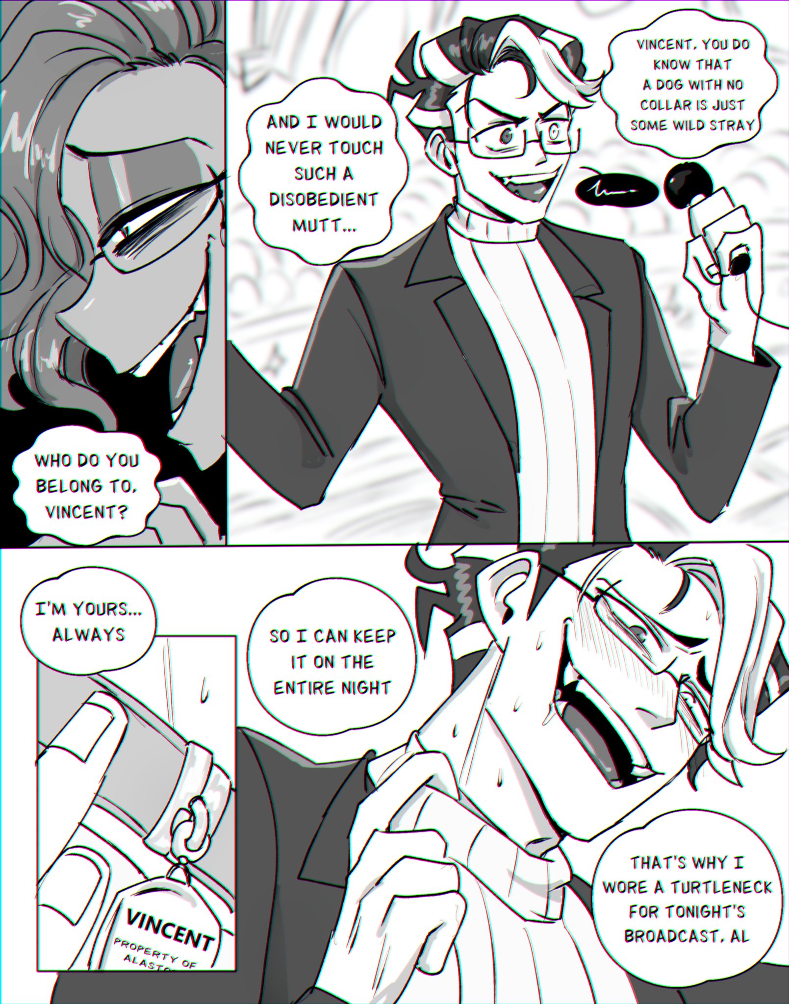 >>4020551Angst. I love it when Vox doesn't get what he wants, and then you find fluff where they're happy and it hits so divinely bittersweet <3>>4020555I adore stuff with crt vox (Vincent? Are we saving "Vincent" only for his human form?) too. He is so sweet and smitten>>4020582Love this