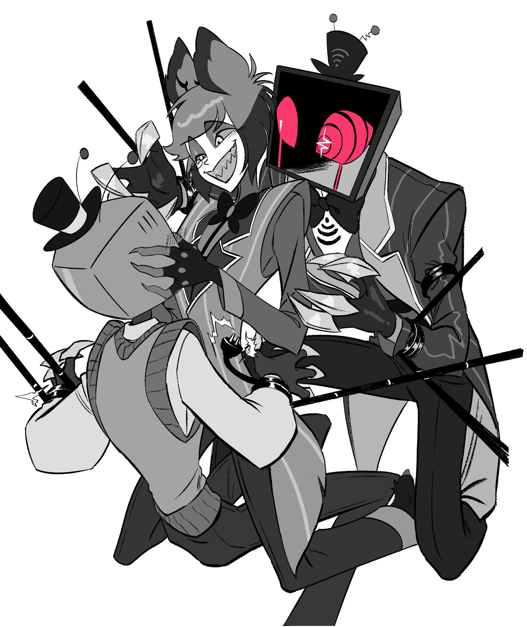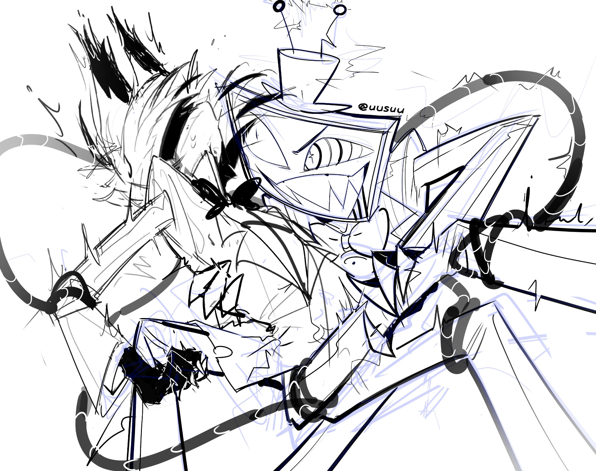 >Vincent giving Alastor piggy back ridesI don't think I'd ever experience sadness again if TIA uploaded a new radiostatic doodle every day for the rest of the year