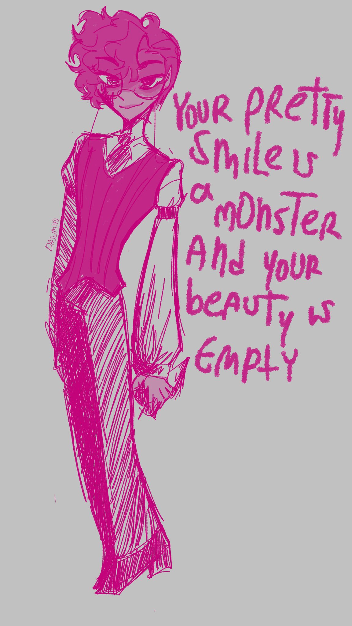 >>4021005I kind of dread the day one of them recognises Alastor since they're constantly on youtube and tiktok. There are definitely way too many kids into the shows, and way too young. I can kind of excuse teenagers even if I don't want to interact with them, but the fact that there are kids under 10 who know about it is just gross.Anyway. I've been trying to write all day but I'm not into it because there's no Alastor. I just have to get through this one section with Charlie and Mimzy, but I can't do it. Need deer.