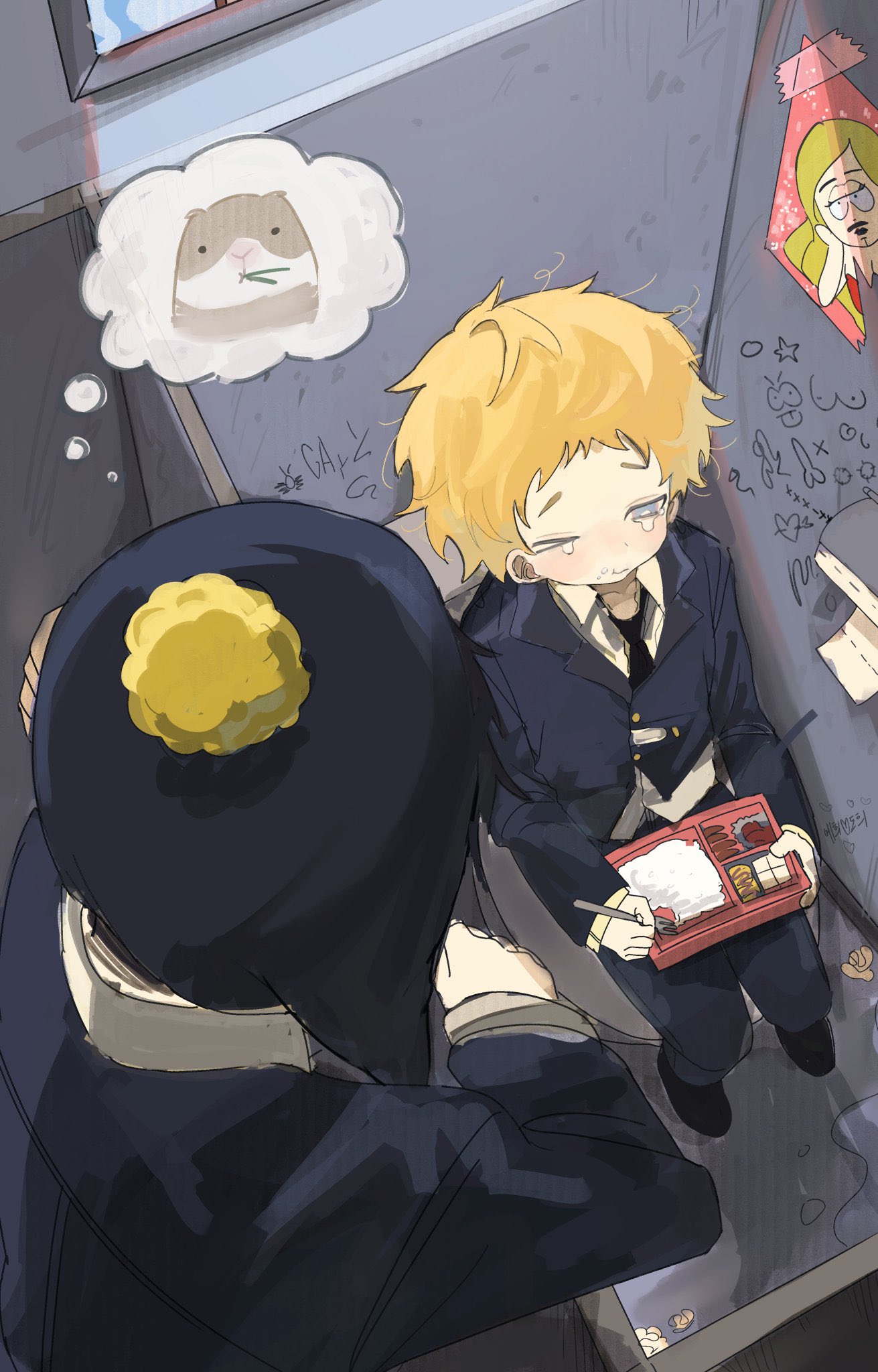>>4030459why would someone make such a beautiful illustration only to add the detail of the boy holding his own marinated balls in a jar jfc. taking away parts of sho's genitals is pure evil