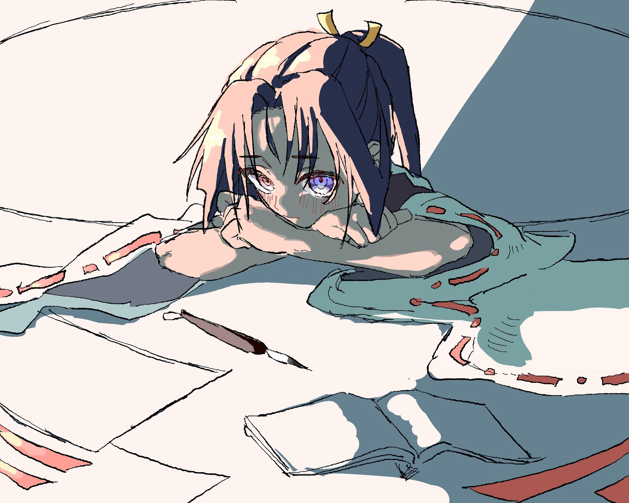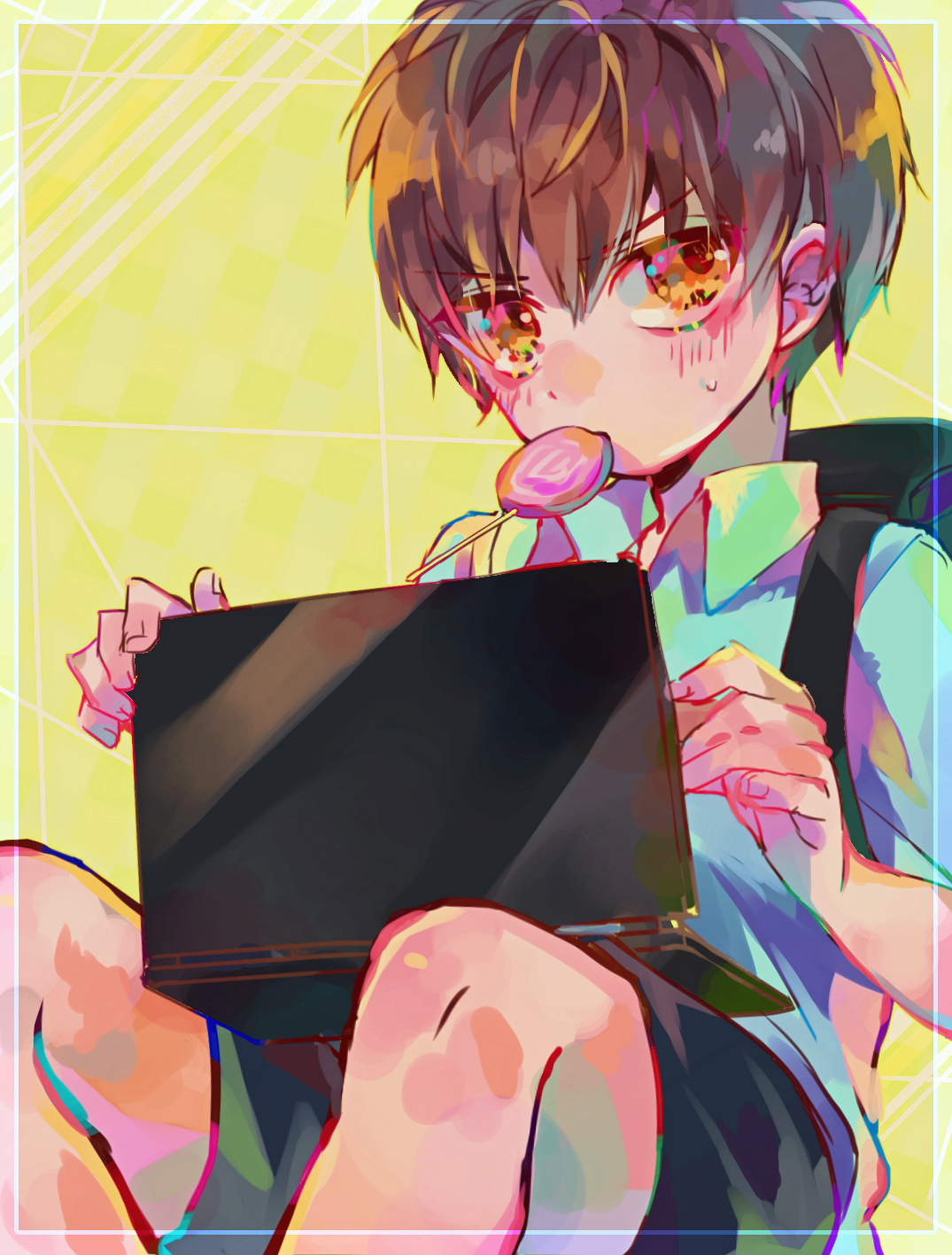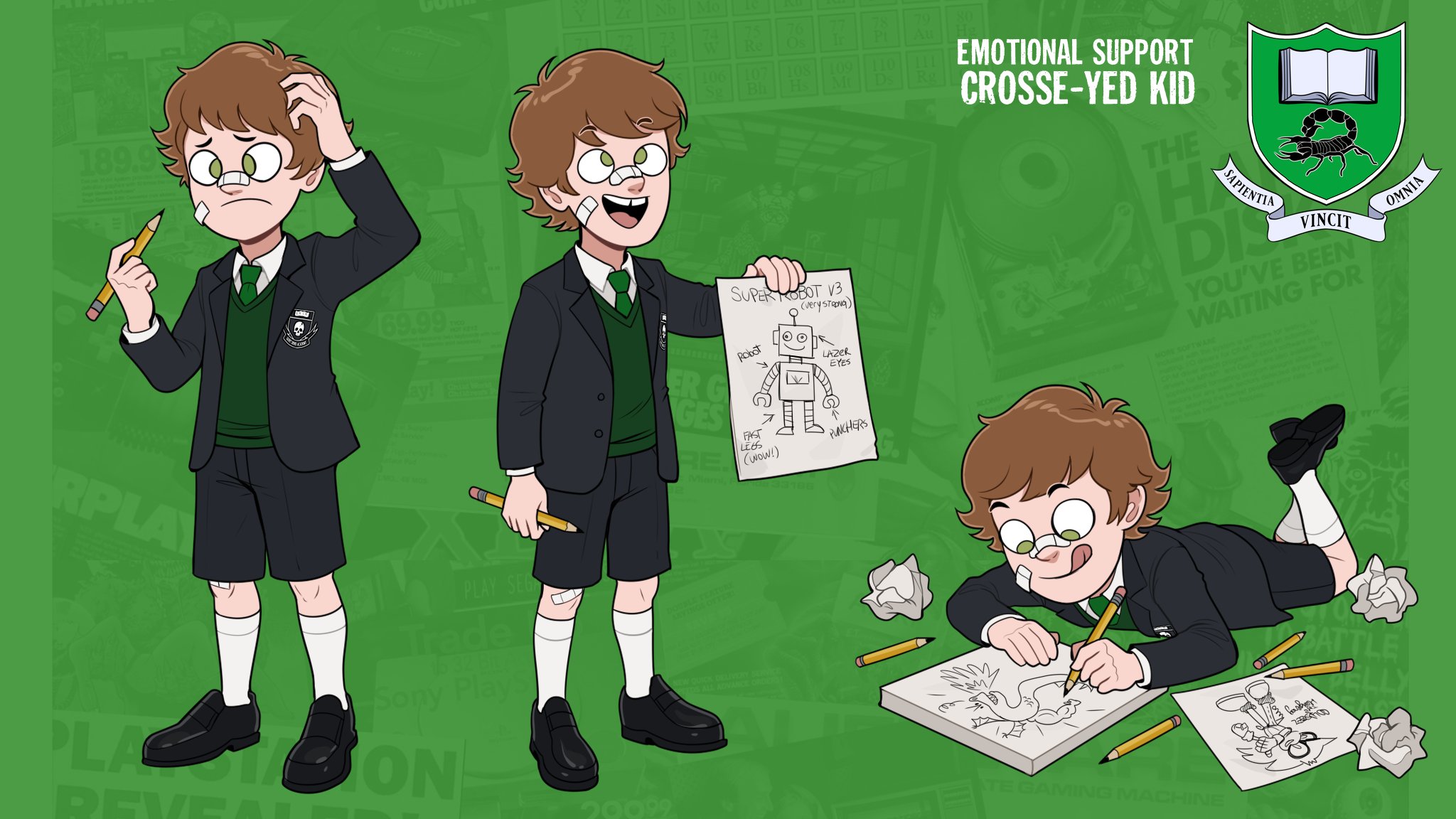 pretty popular artist called hellonearth (HellOnEarth_III on twitter) made a derpy, cross-eyed shota OC :-)what do you guys think? is he cute?