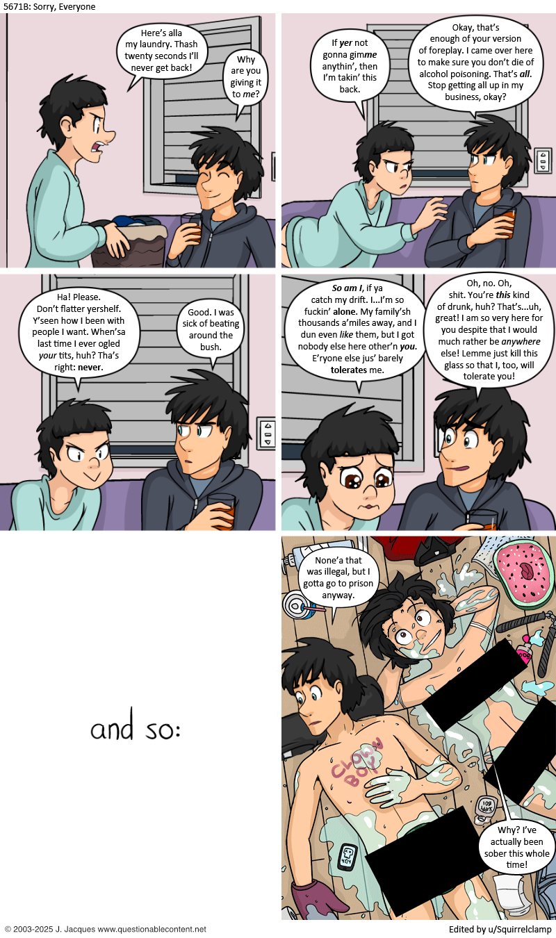 >>151960780I don't know what would be more appropriate, Liz as a virgin or Liz having lost her virginity to pathetic pity sex. Either way she's probably gone to the hospital after slipping and falling while trying to ride a shampoo bottle in the shower.
