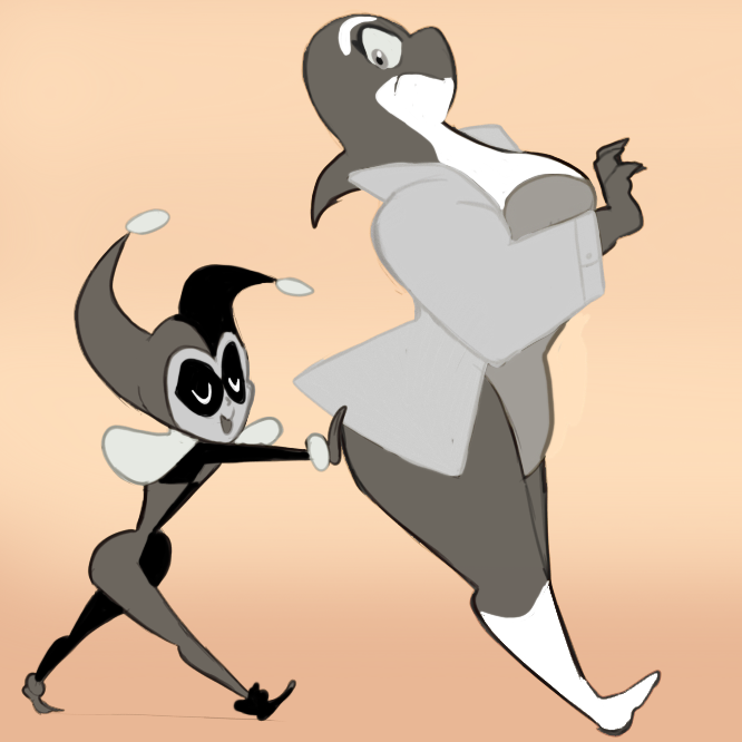 >>153086576Eh, it's not *just* a guy in a suit with a TV head though, it's specifically that they both wear 1920s fashion, have almost identical looking TVs for heads, and both use the SMPTE bars for their mouths.