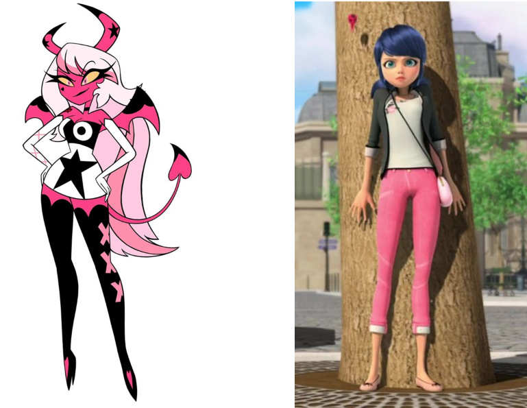 Requesting an outfit swap between these two characters while keeping the proportions maybe have Verosika tease Marinette about not being as ample.